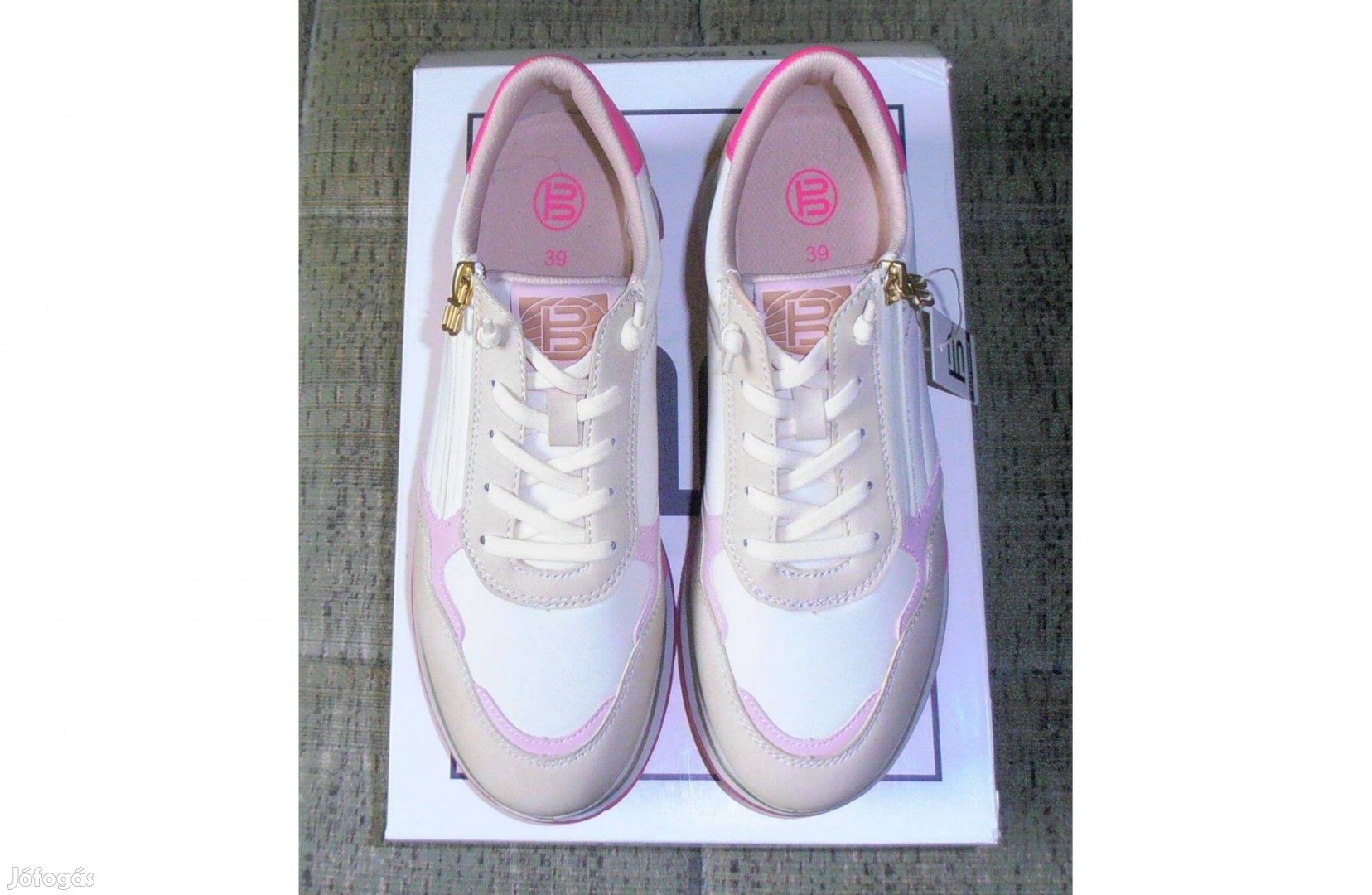 Eladó a képeken látható új Bagatt női sneaker 39-es krém-pink színben. A cipő nagyon szép és elegáns kivitel, díszes külső talppal, gumis fűző és cipzár segíti a felvételt, talpbetéte cserélhető, nagyon könnyű, kényelmes viselet. Platform 3 cm, Sarokmagasság 4,7 cm.