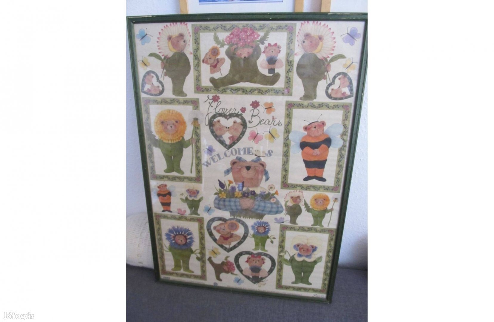Eladásra kínálom a képen szereplő, fa keretes, üveglapos macis képet. A képek magukért beszélnek. Körbe fotóztam. Az üveglap miatt nehéz fotózni, élénkebb a színe, nagyon bájos a kép.