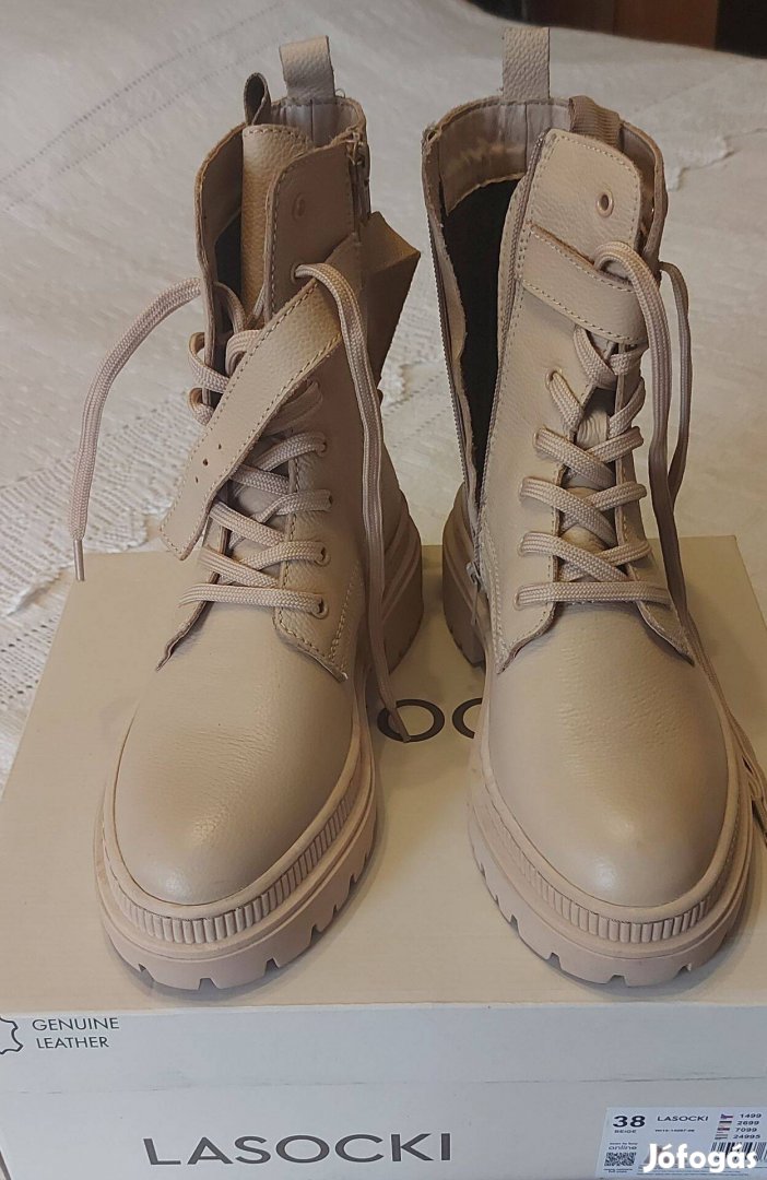 Bakancs bokacsízma valódi bőr bézs 38-as Lasocki cipő