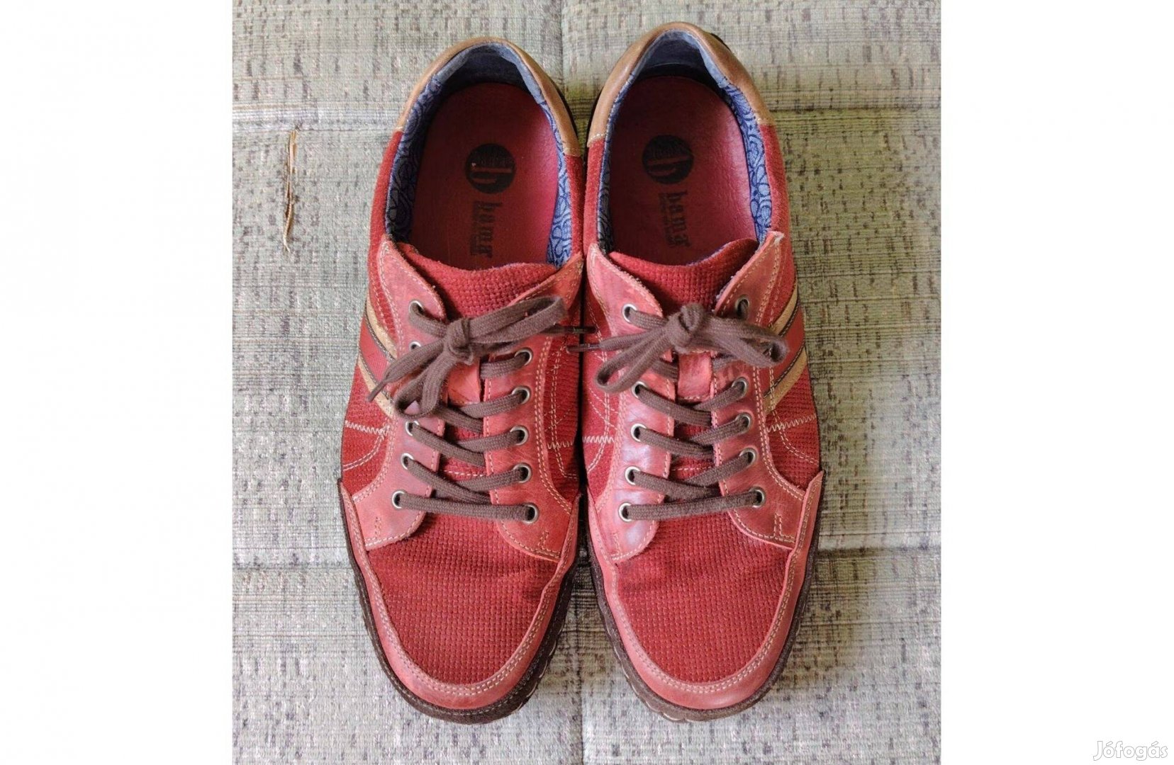 Eladó a képeken látható pár alkalommal használt, tökéletesen szép és jó, újszerű állapotú Bama férfi sportcipő 46-os bordó-barna színben. A cipő a márkára jellemzően minőségi kidolgozású, kényelmes, könnyű viselet. Anyag természetes bőr, belül bőr és textil. Dohány- és állatszőrmentes lakásból. Bth. 29,5 cm.