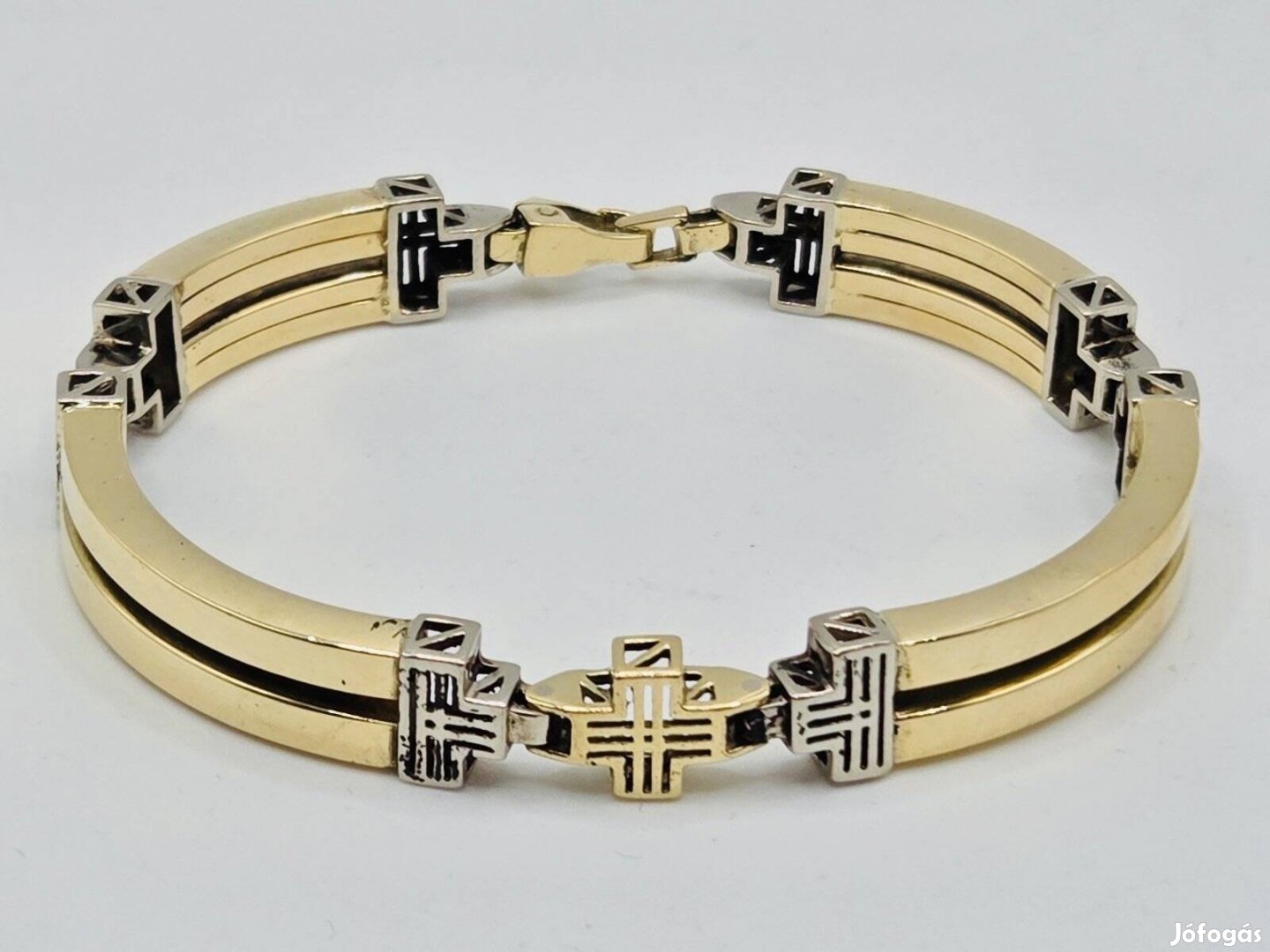 Eladó egy gyönyörű egyedi 14 karátos magyar fémjelzett barakka arany karkötő.. 28 gramm . 21-22cm kb.