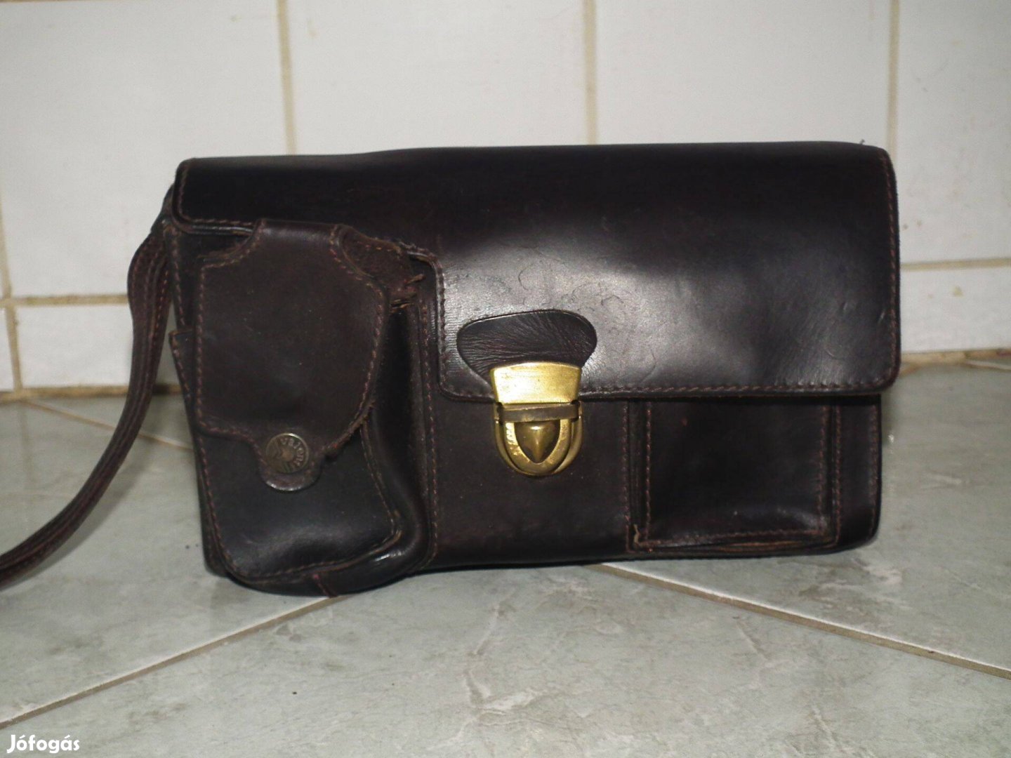 Valódi bőr autóstáska belül 2 rekesz a kettő között cipzáras zseb, kívül elöl 2 zseb hátul 1 cipzáras zseb, kb. 23,5 x 16,5 x 8 cm. Egy 2 cm. -es elengedett varrás (utolsó kép).