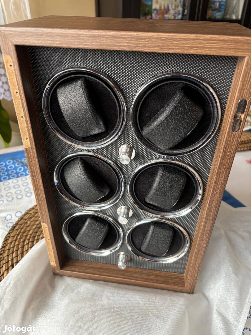 Eladó egy használt fa óraforgató 6 órának, barna színben. Kifogástalan működés, kék led világítás a párnák körül. Választható forgatási irány (balra, jobbra, váltakozva).