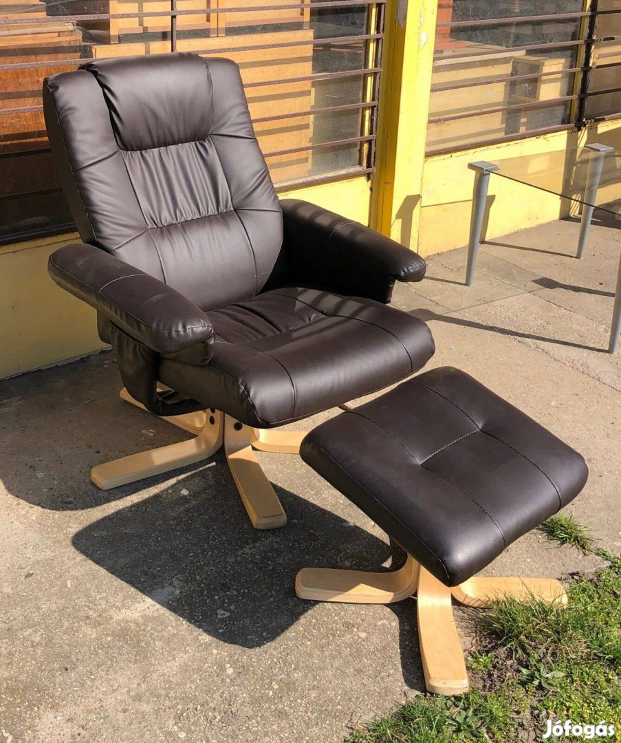 Barna műbőr fotel + lábtartó