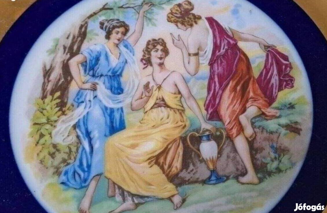 Gyönyörű porcelán tányér, barokk jelenettel díszítve, szép állapotban.
