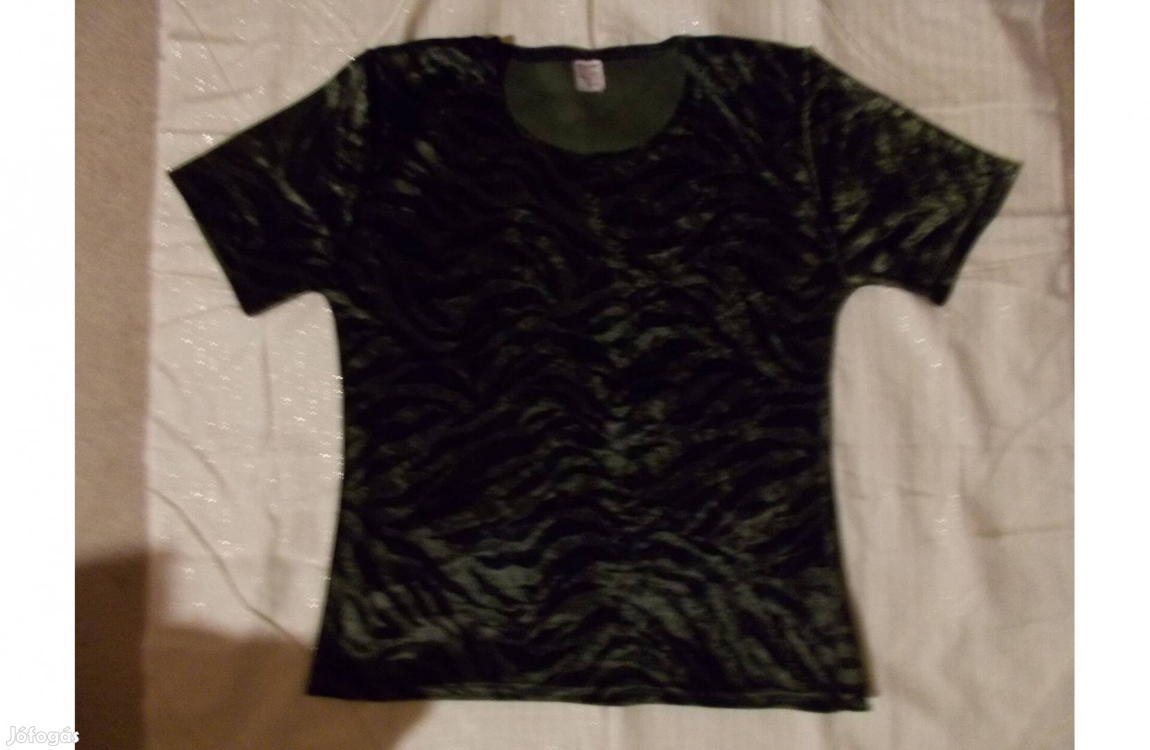 Eladó a képeken látható fekete-zöld cirmos bársony felső, 36-38-as, S-es méret. Szinte új, egy-két alkalommal használt. Átvehető Budapesten, kérésre postázom.