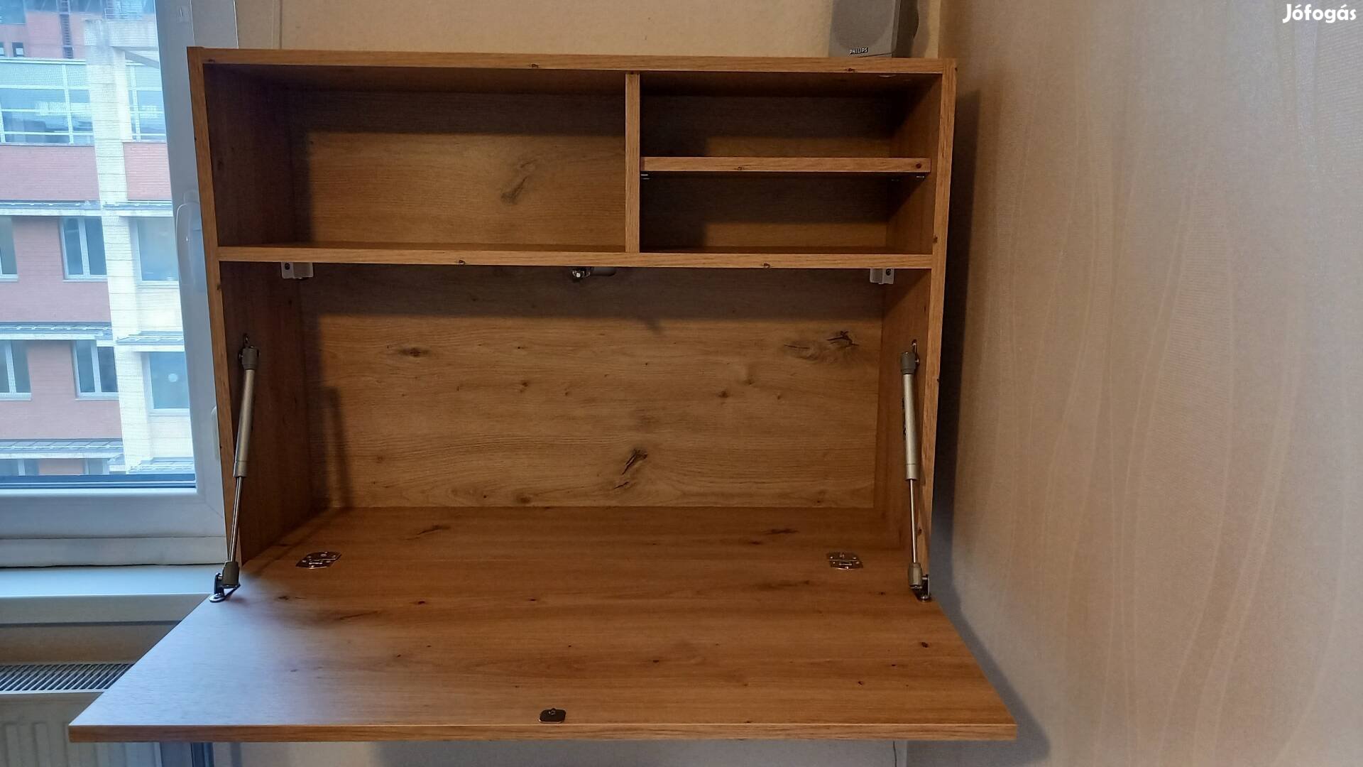 Bárszekrény, íróasztalpolc,lenyitható, tölgy dekorból, költözés miatt eladó. 2025 novemberben a Mömax áruházban vásároltuk.
