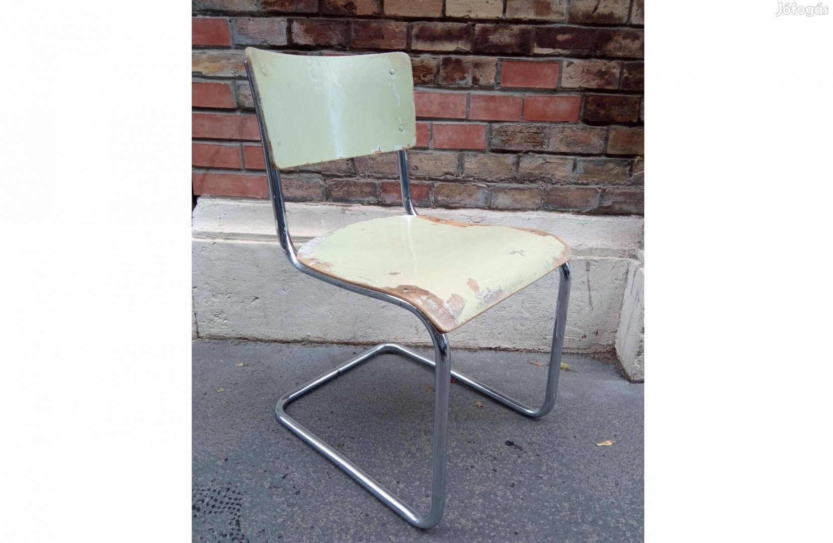 Hajlított acélvázas, krómozott támlás szék, az 1930-as évekből, minimálisan patinás állapotban, képek szerint.