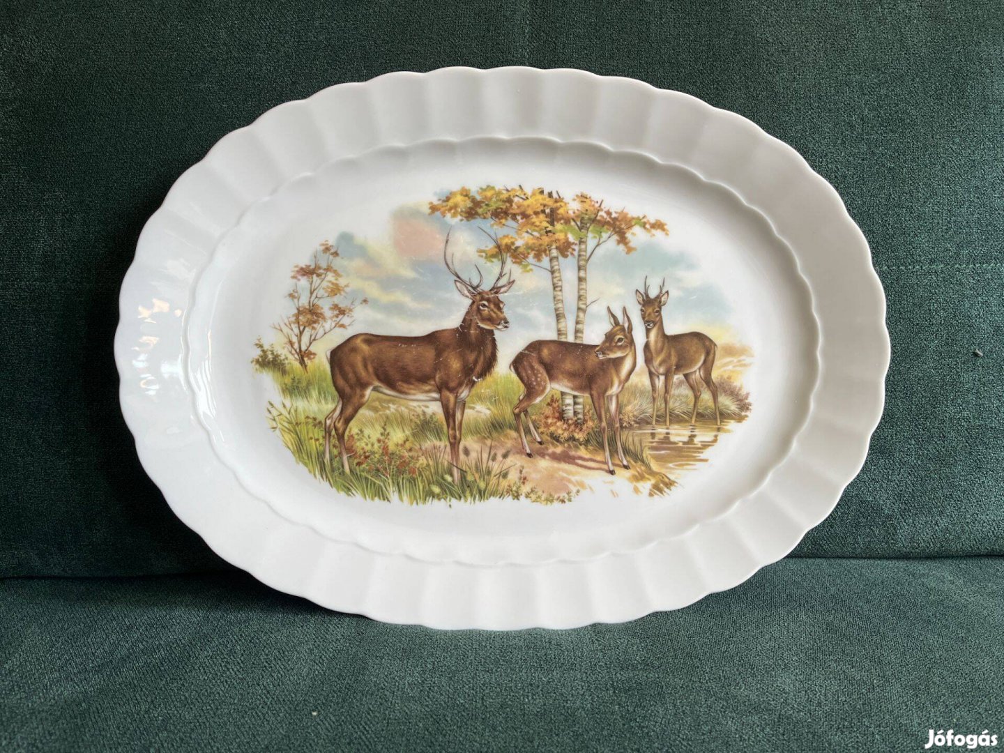 Német gyártmányú, Bavaria sültes vagy pecsenyés tál vadász (őz és szarvas) mintával