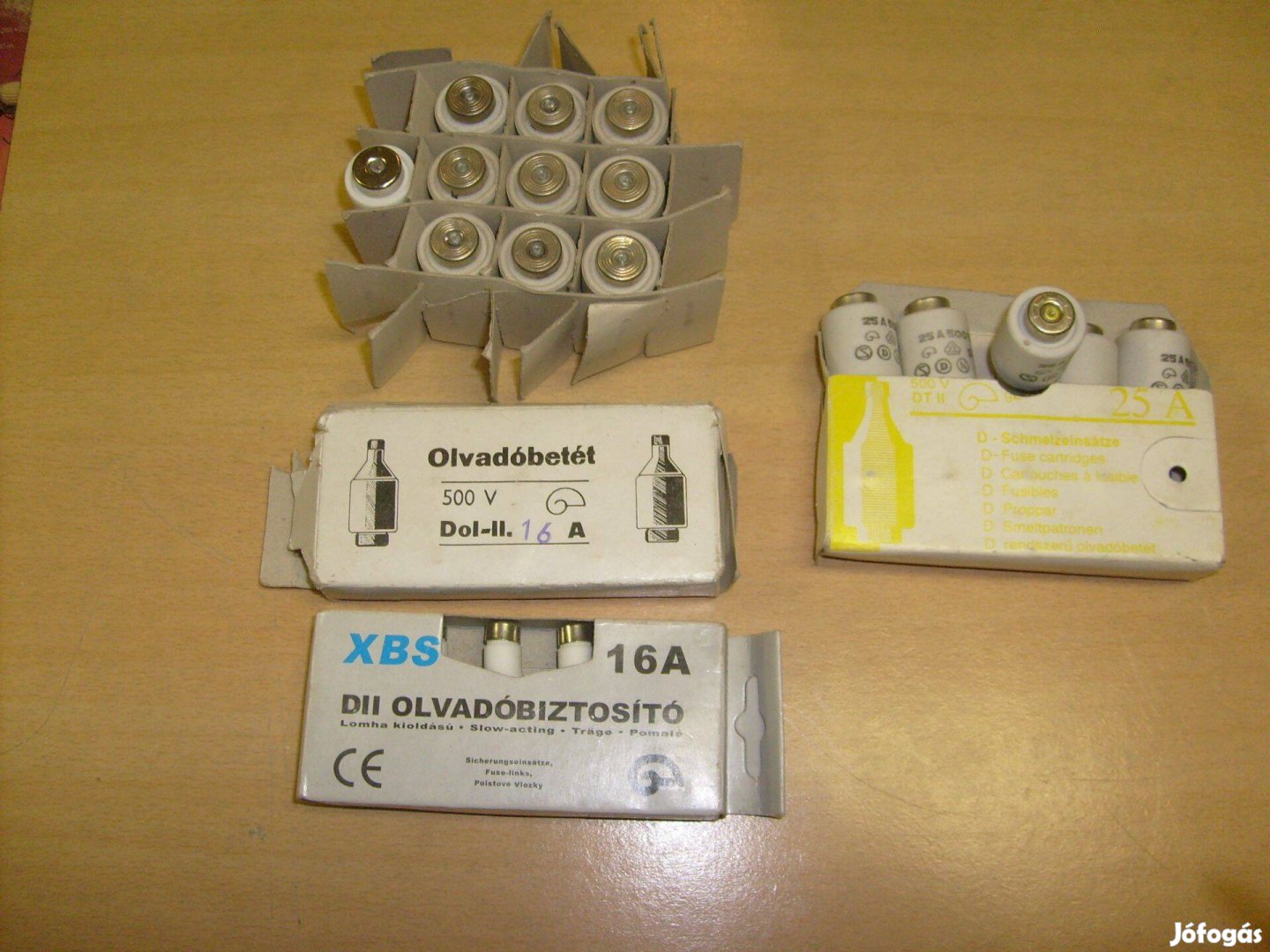Van 10 , 16. , 20 , 25, és35 Amperes betét. Ezenkívül pár db. vékony / 10 mm. es 10 és 16 A. es Dol betét is. Össz. kb. 40 darab.