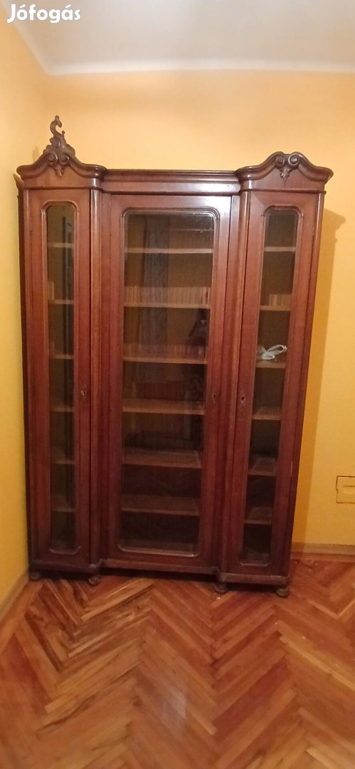 Jó állapotú, szúmentes, fózolt üveges könyvszekrény elvihető Zuglóból. Széles 144 cm, magas 217 cm a dísz nélkül, mindkét dísz meg van. Szállítás a vevőt terheli.