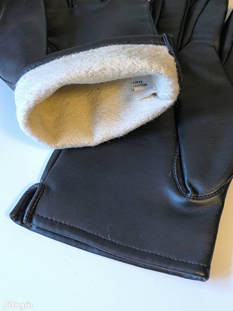 Fekete vinyl kesztyű világos pamut béléssel.