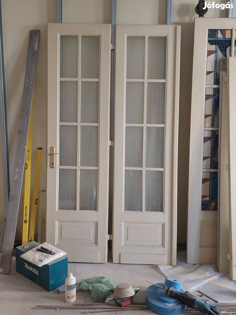 Kétszárnyú üvegezett nagypolgári ajtó