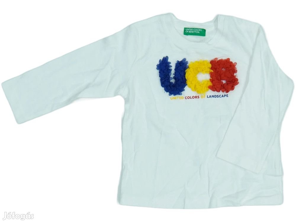 Stílusos hosszú ujjú felső. A póló elején színes 'UCB' felirat látható kék, sárga és piros betűkkel, alatta 'UNITED COLORS OF LANDSCAPE' szöveggel. A nyak résznél United Colors of Benetton címke található. Kényelmes viselet hétköznapokra és szabadidős tevékenységekhez. Puha anyagból készült, amely biztosítja a kényelmet egész nap. Klasszikus fazon, amely jól kombinálható farmerrel vagy melegítőnadrággal. Minőségi kivitelezés és tartós anyag jellemzi.