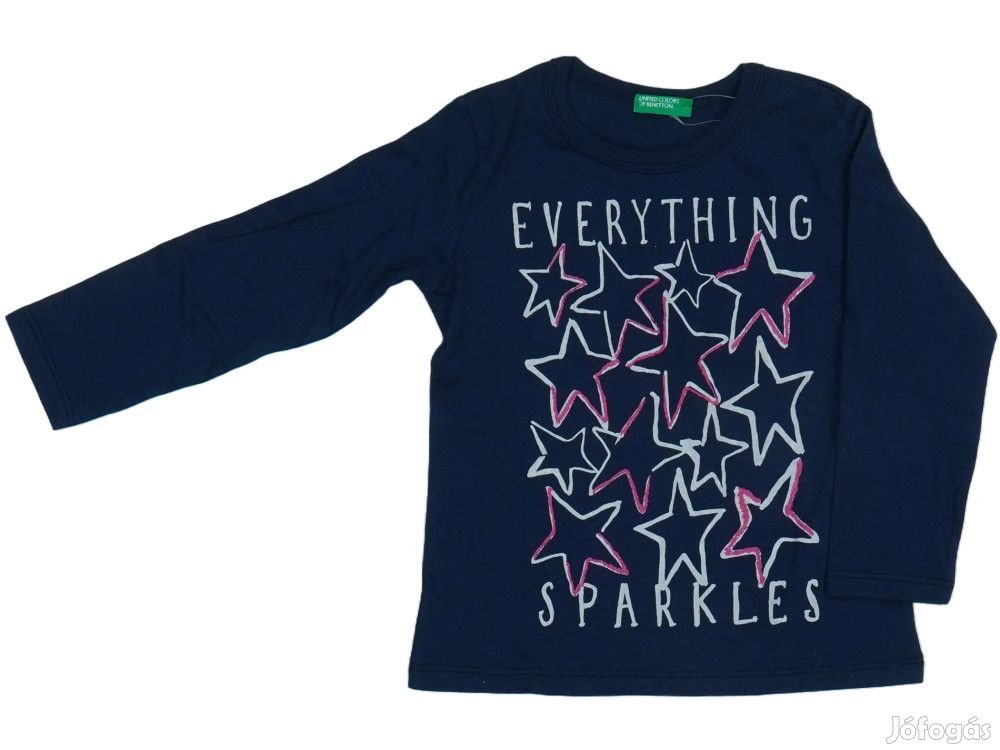Gyönyörű sötétkék hosszú ujjú felső lányoknak, különleges csillag mintával és 'EVERYTHING SPARKLES' felirattal. A póló középső részén fehér és rózsaszín kontúrú csillagok alkotnak egyedi mintázatot, amely játékos és trendi megjelenést kölcsönöz. A környakú kialakítás kényelmes viseletet biztosít, míg a hosszú ujjak perfektek a hűvösebb időjárásra. Az anyag puha és kellemes tapintású, ideális mindennapi viseletre. A United Colors of Benetton márkájú darab minőségi kidolgozásával és stílusos dizájnjával tökéletes választás kis hölgyek számára, akik szeretik a vidám motívumokat.