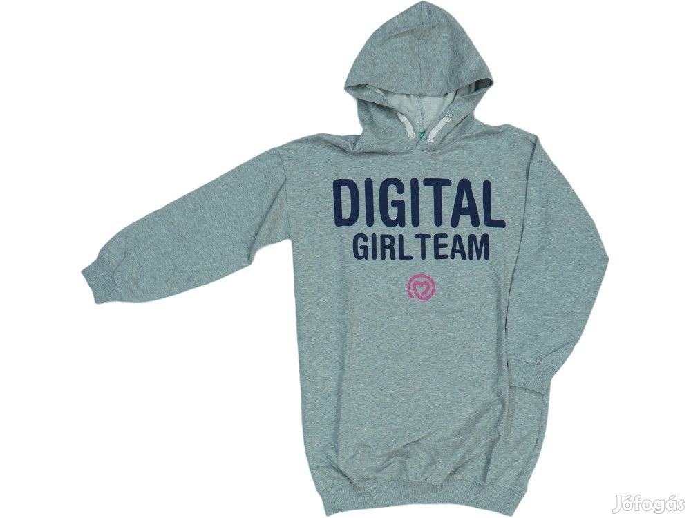 Kapucnis pulóver különleges stílusával és kényelmével tűnik ki. Az elején nagyméretű 'DIGITAL GIRL TEAM' felirat található, ami alatt egy rózsaszín szívecske logó látható. A pulóver kapucnis kivitelű, amely extra melegséget és stílust biztosít. A hosszú ujjak és a klasszikus szabás kényelmes viseletet garantál. Ideális választás mindennapi viselethez vagy sportos alkalmakhoz.