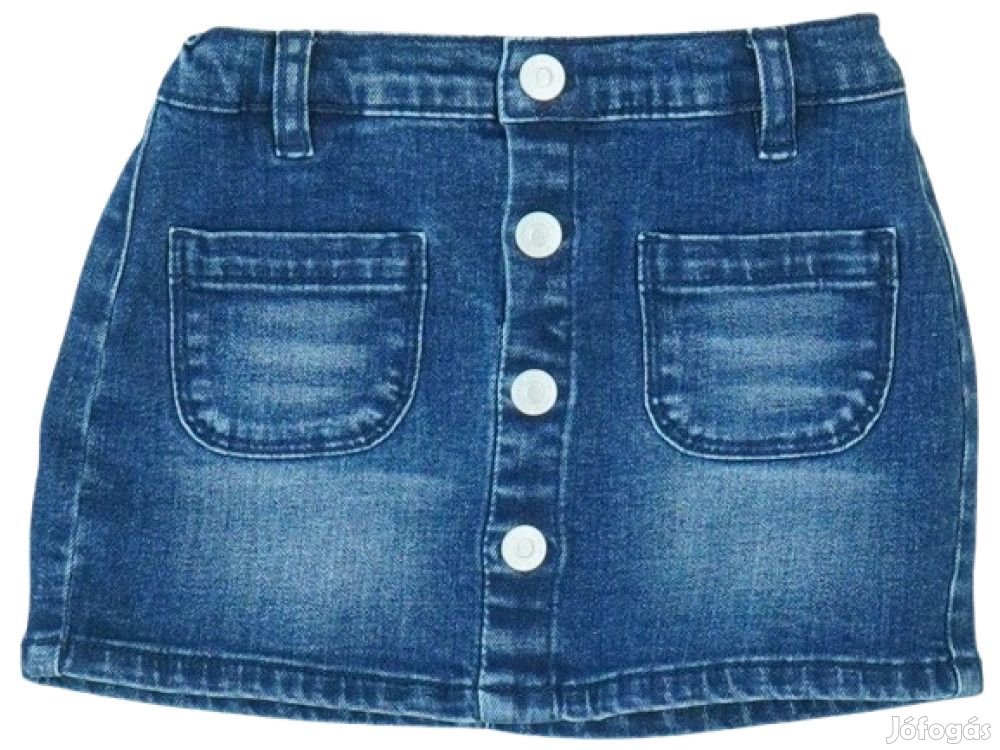 Klasszikus farmerszoknya lányoknak, sötétkék színben. A szoknya elején négy ezüst színű gomb található, amelyek nemcsak funkcionálisak, hanem dekoratív elemként is szolgálnak. Két praktikus zseb díszíti az elejét, míg a derékrész gumis, amely kényelmes viseletet biztosít. A farmeranyag tartós és időtálló, tökéletes mindennapi viselethez. A szoknya hosszúsága térd fölötti, modern és trendi megjelenést kölcsönözve. Kiváló minőségű varrásokkal és részletekkel készült, amely hosszú élettartamot garantál. Ideális választás iskolába, játszótérre vagy baráti találkozókra egyaránt.