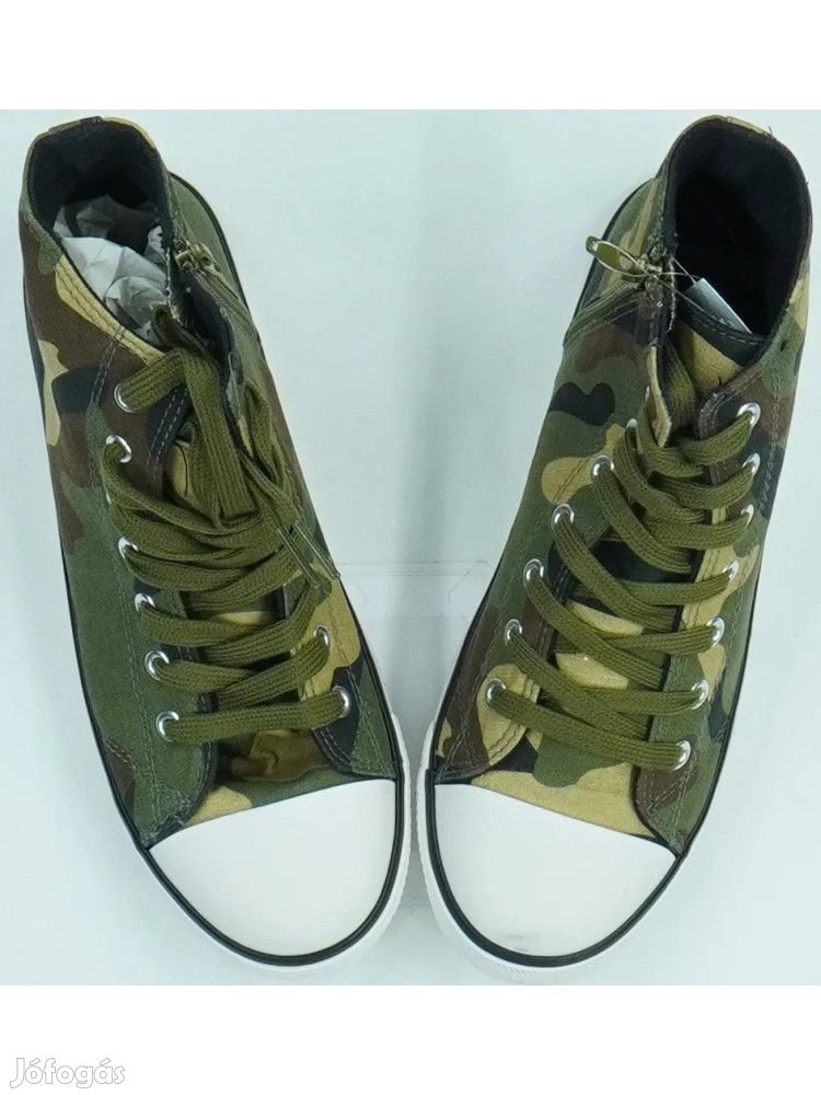 Textil béléssel és fűzővel, gumis orral, zöld alapszínekkel, belső oldalán zippel. Belső talphossz: 24,5 cm. Pillekönnyű súlyú!
