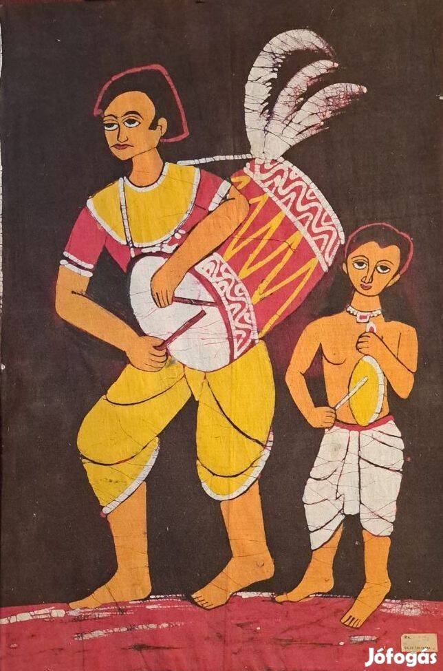 Bengáli ünnepi dobosok apa és gyermek Selyem kartonon. Mérete: 33x50 cm.Keret nélkül.