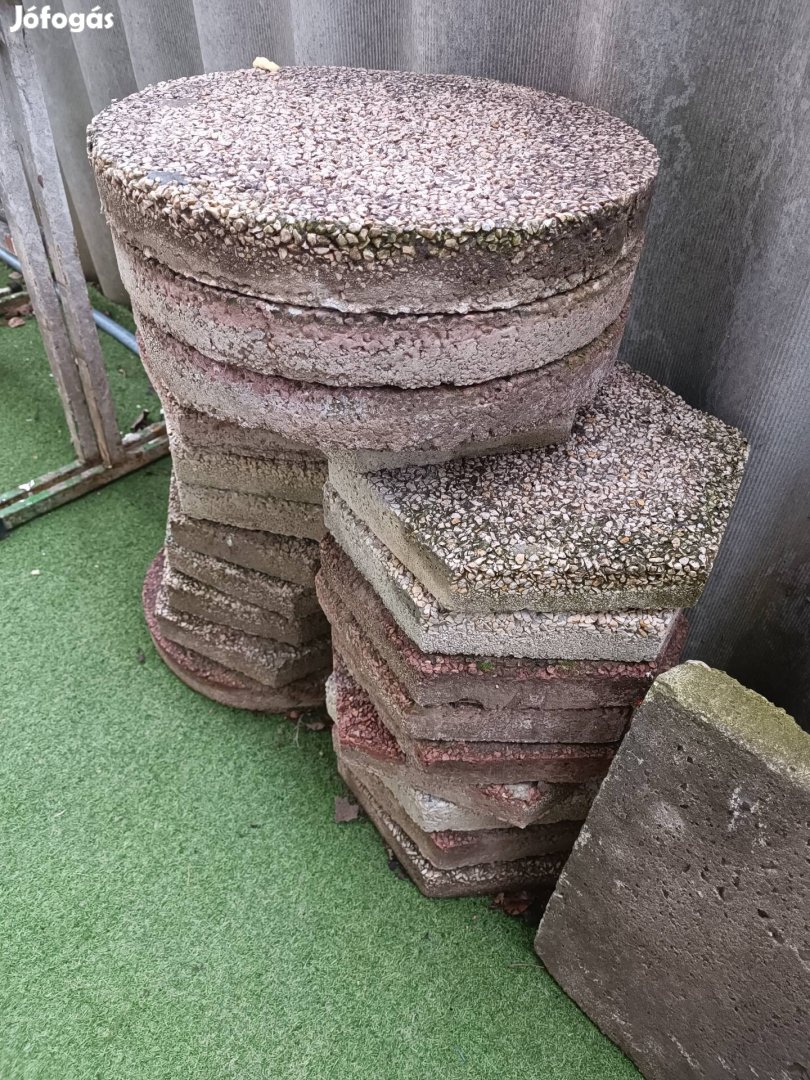 Beton járólap. Kör 40X5 4db. Hatszög 32X5 18db. Egyben eladó. Szállításban nem tudok segíteni.