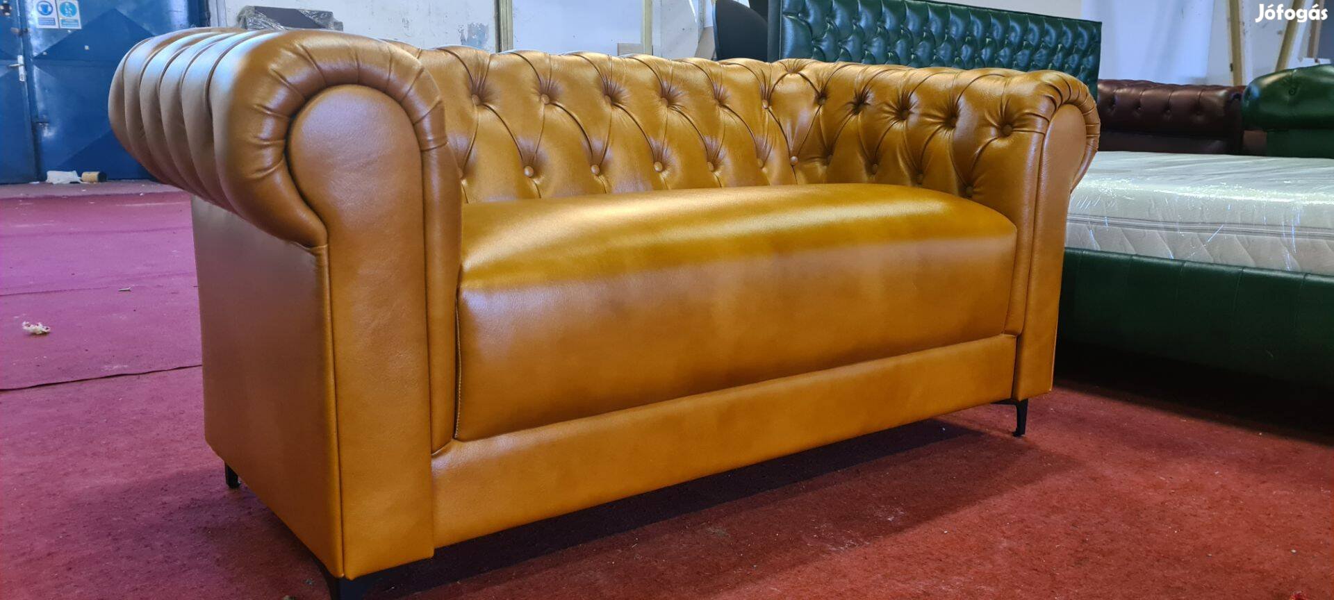 Bezárunk!Fél ár!Új Chesterfield valódi bőr csau barna kanapé 300eft