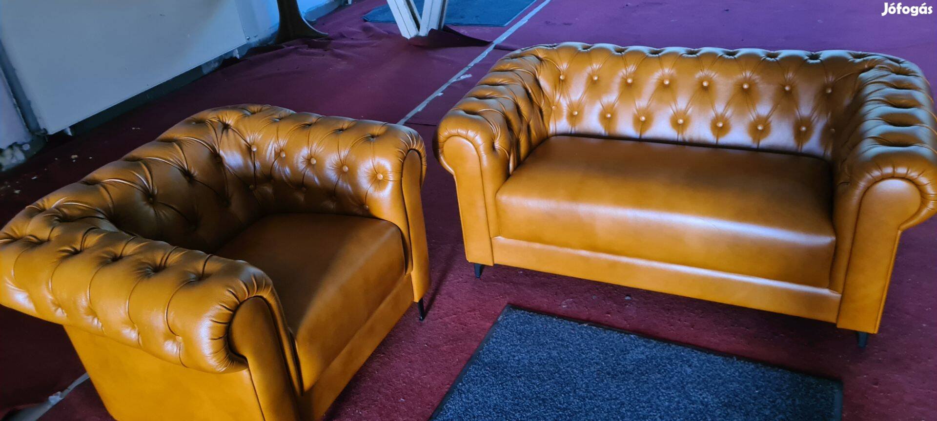 Bezárunk!Fél ár!!!Új Chesterfield csau barna bőr kanapé +fotel 500eft