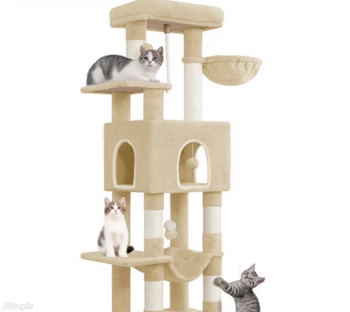 149 cm magas cicatorony, kaparófa, pihenővel, bújóval, játékkal bézs színben.