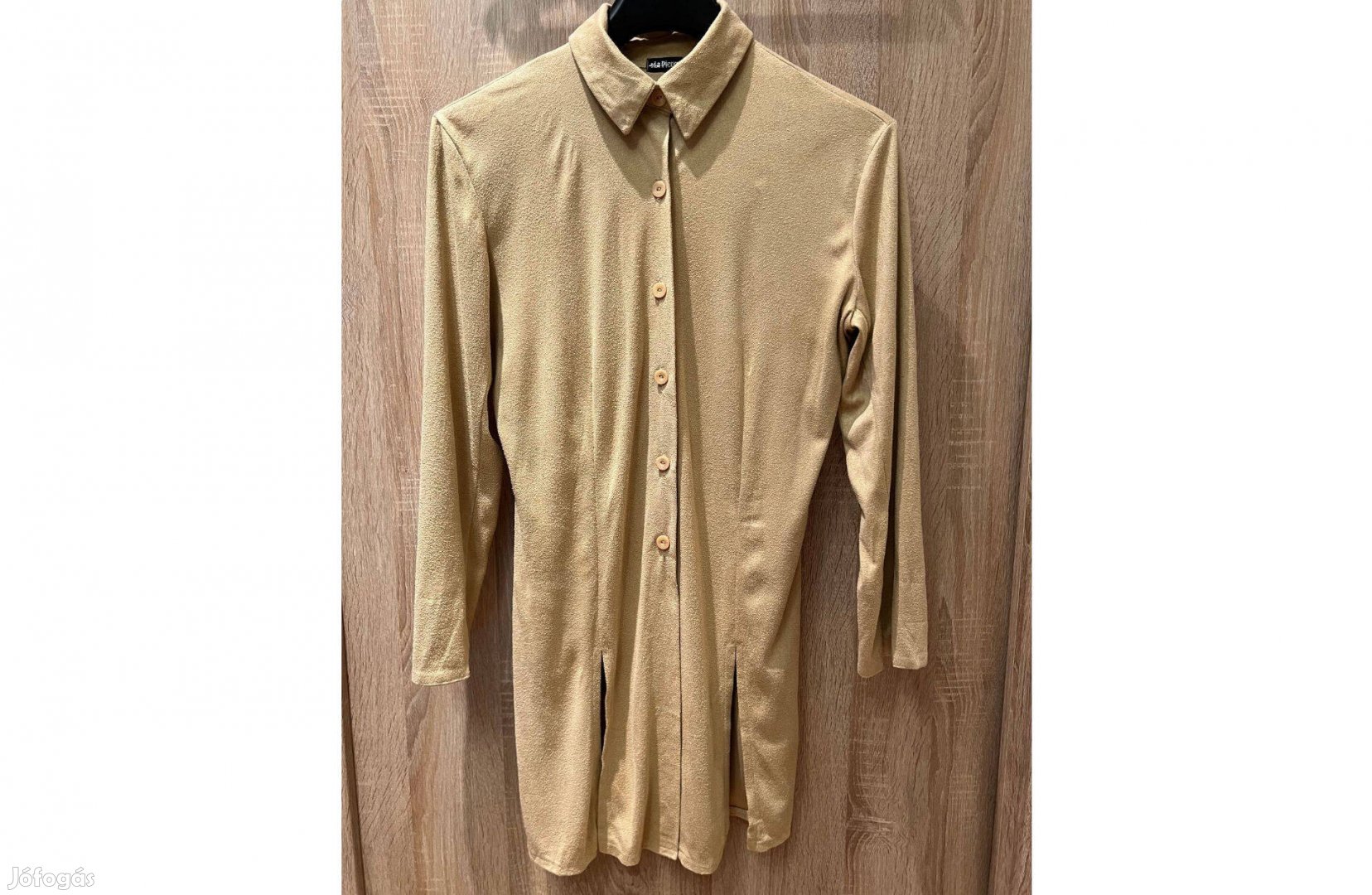 Elöl végig gombos, tunikaszerű, ha bevan gombolva.