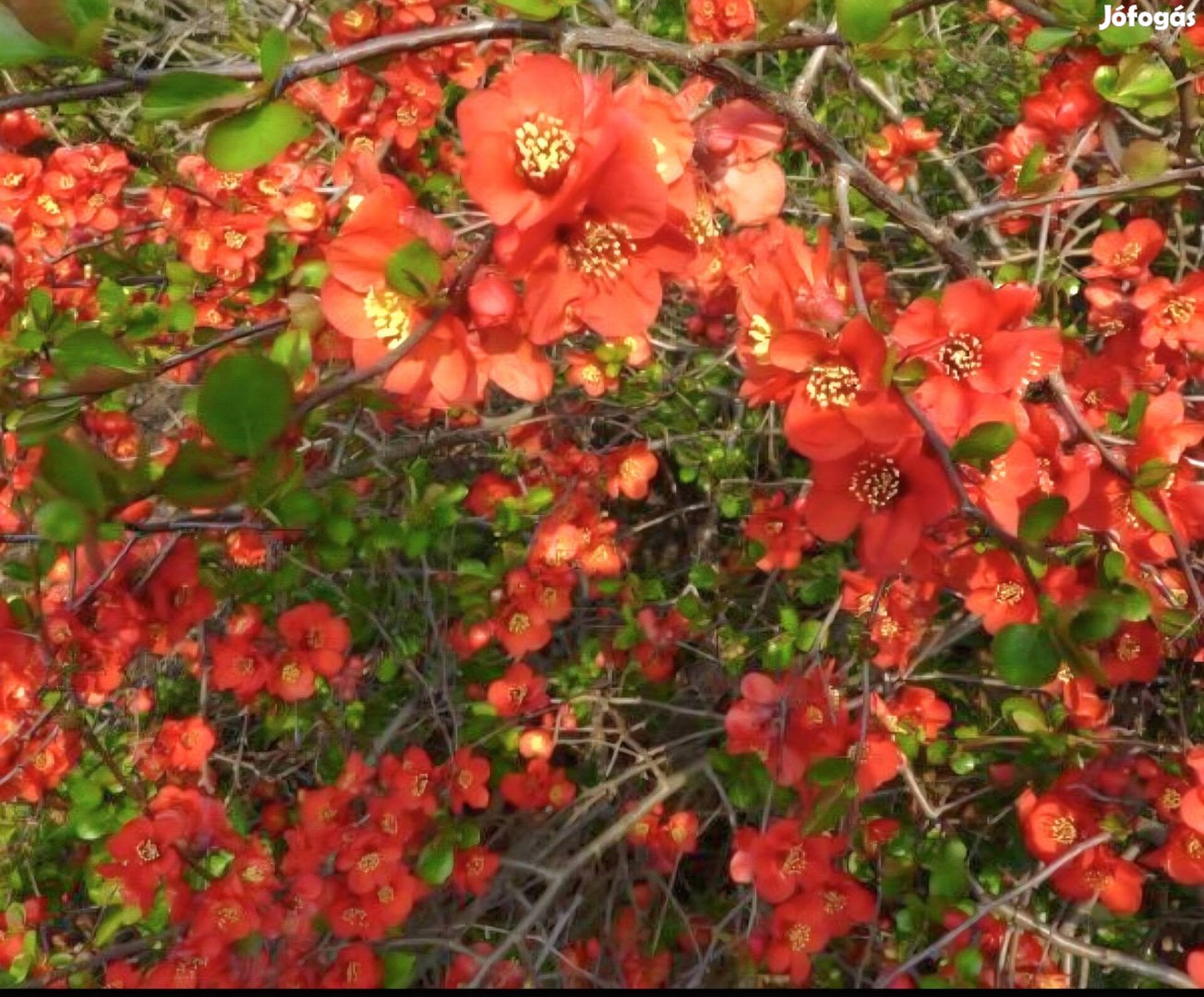 Bíbor Díszbirs, Chaemoneles Sup. Fire Dance 2-2,5 m. lombhullató cserje, könnyen gondozható, közepes víz, fényigényű, napos helyen több és nagyobb virág, normál kerti talaj.