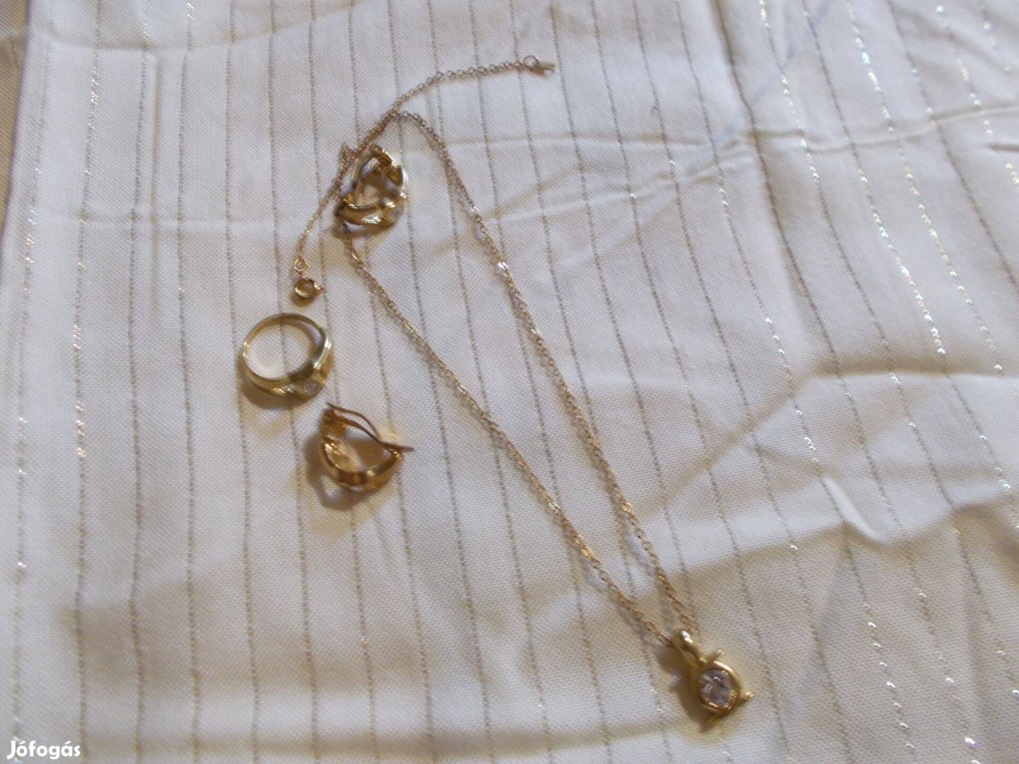 Eladó a képeken látható bizsu szett, fehér köves, aranyszínű nyaklánc, egy pár fülbevaló és egy gyűrű. A teljes szett ára 2890 Ft. Átvehető Budapesten, kérésre postázom.