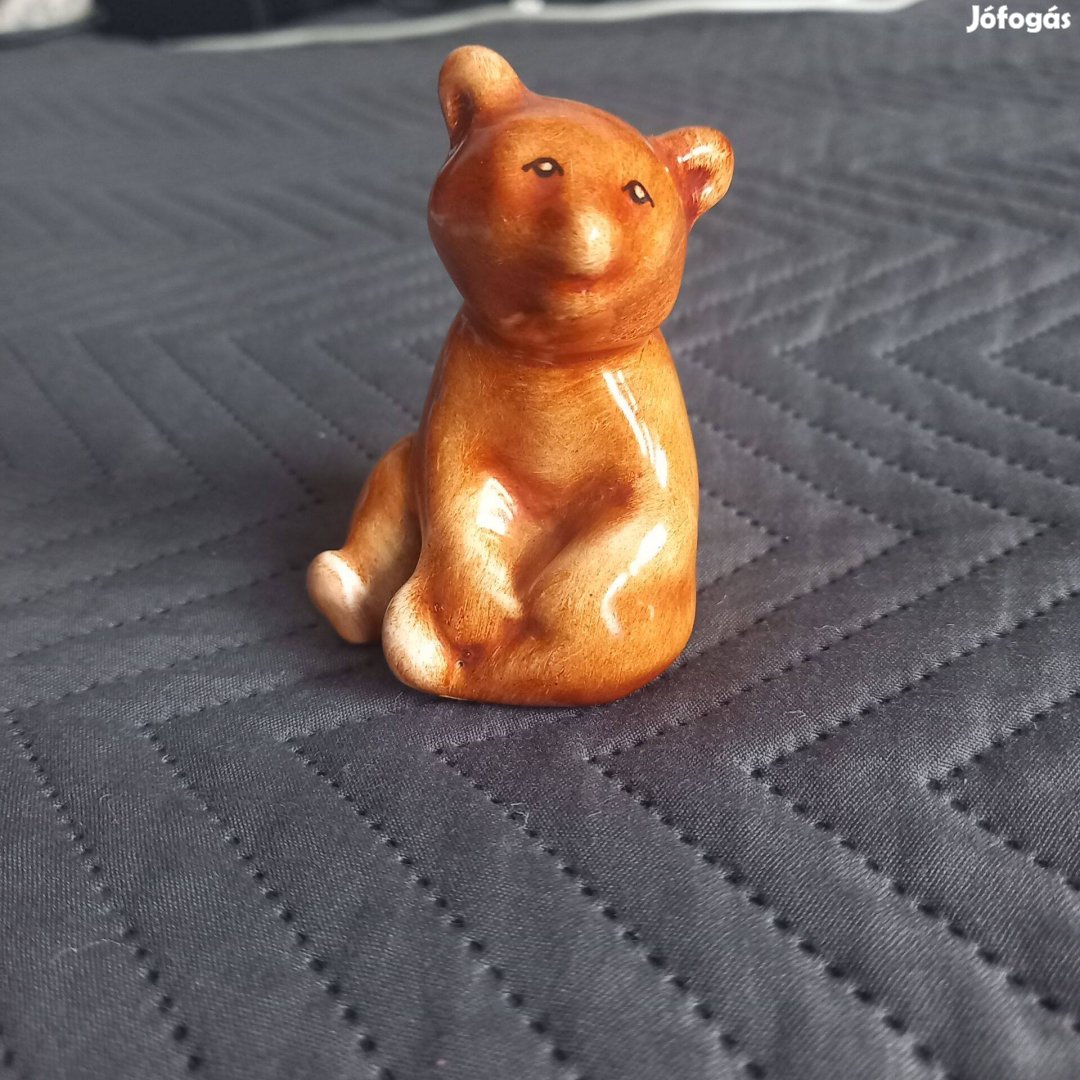 Bodrogkeresztúri barna kerámia ülő mackó, 7 cm magas, kerámia mackó család egy része.