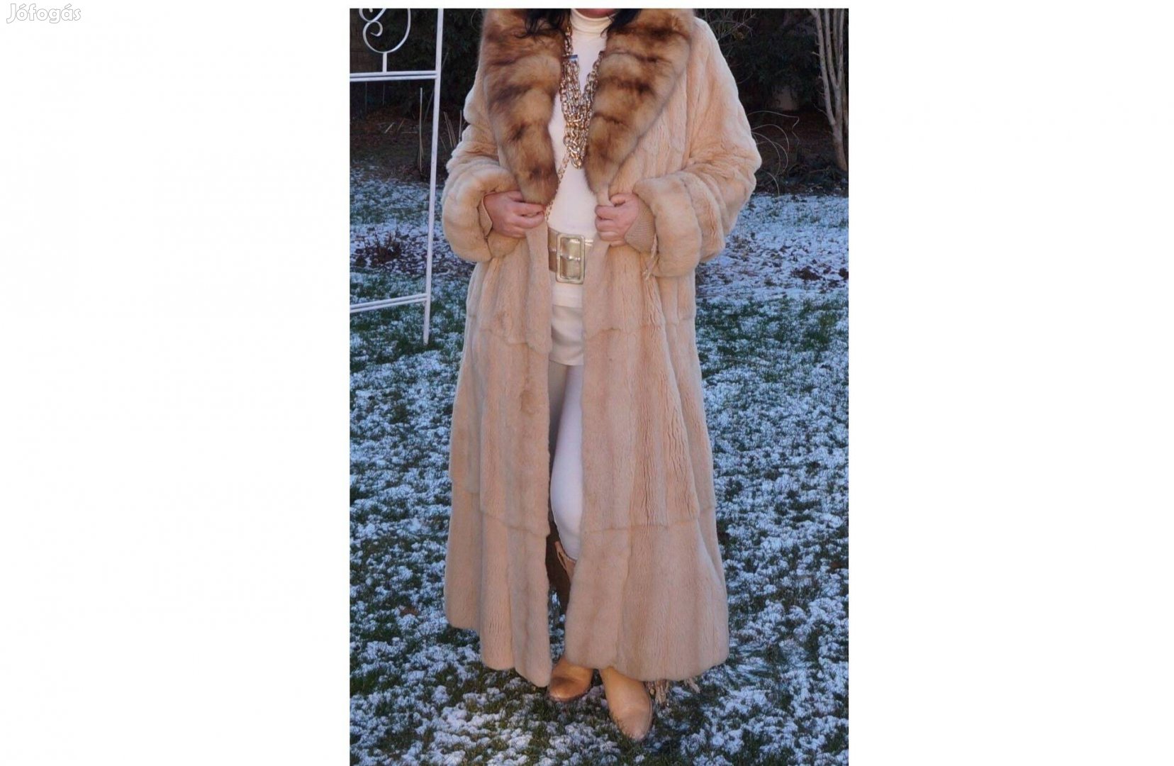 L-es, 40-42-es méretű, bokáig érő, lézernyírott valódi nerc bunda, modern fazon.