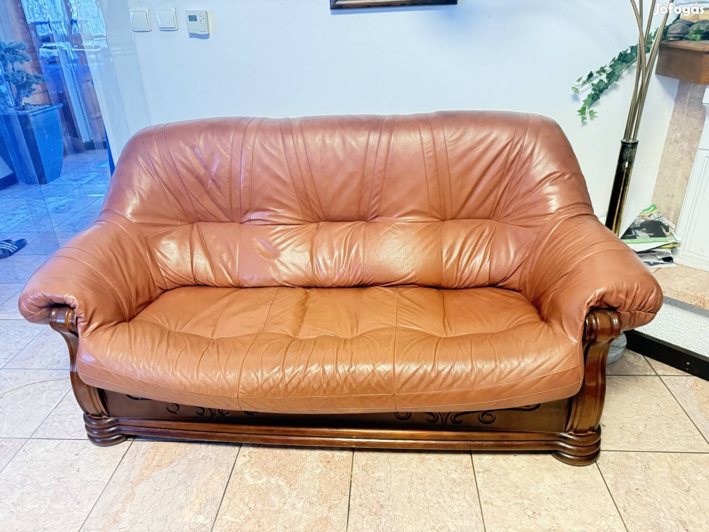 Bőr háromrészes ülőgarnitúra ami kinyitható, vendégággyá alakítható.