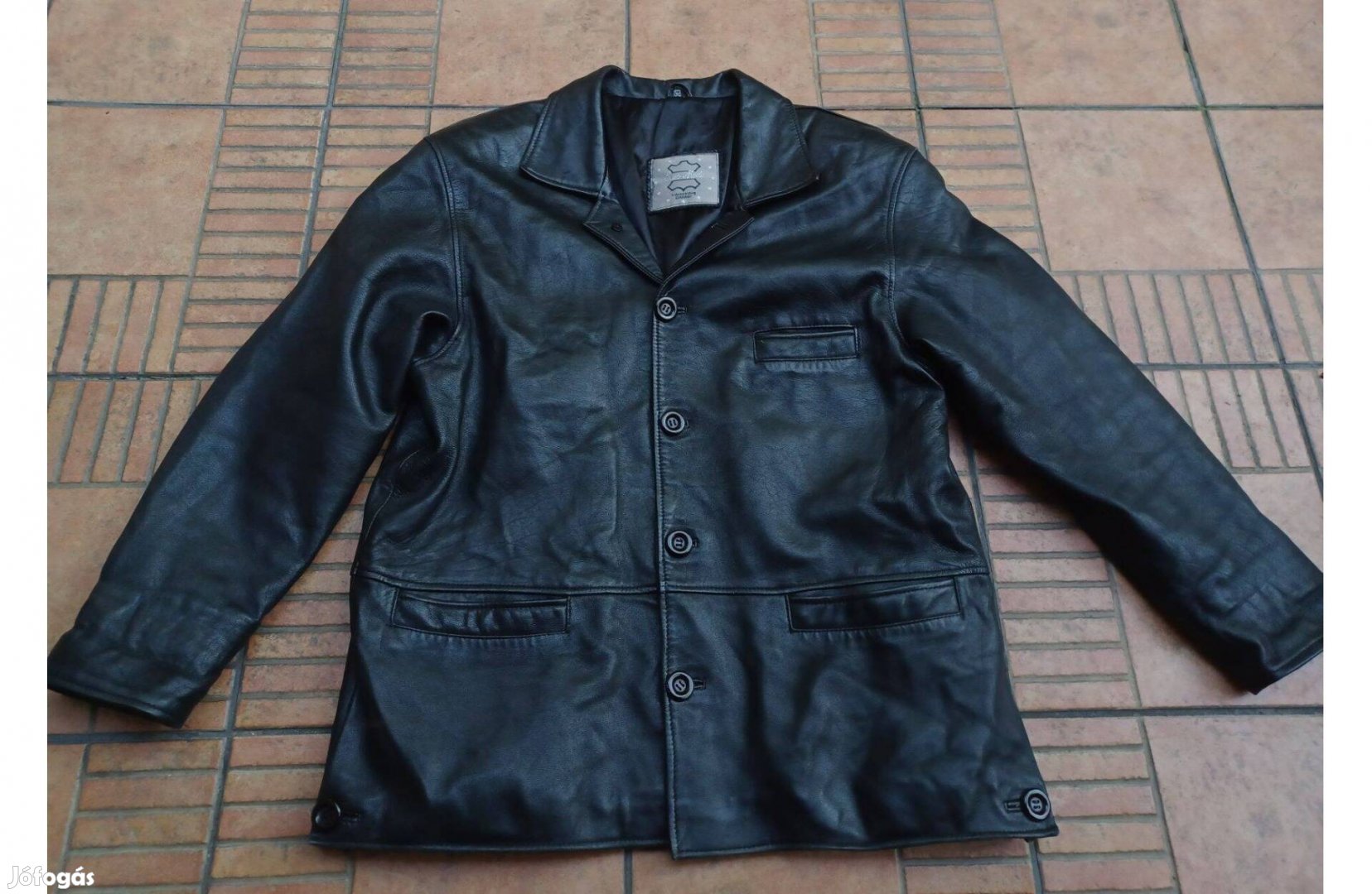 Eladó egy profi, selyem bélésű, végig gombos eredeti Euro Mode finom, valódi bőrkabát, beleírt 52-es