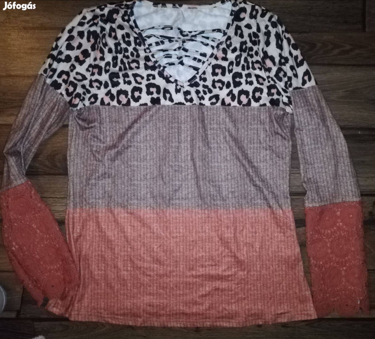 Bordás hatású, leopárd mintás, horgolt ujjú felső
