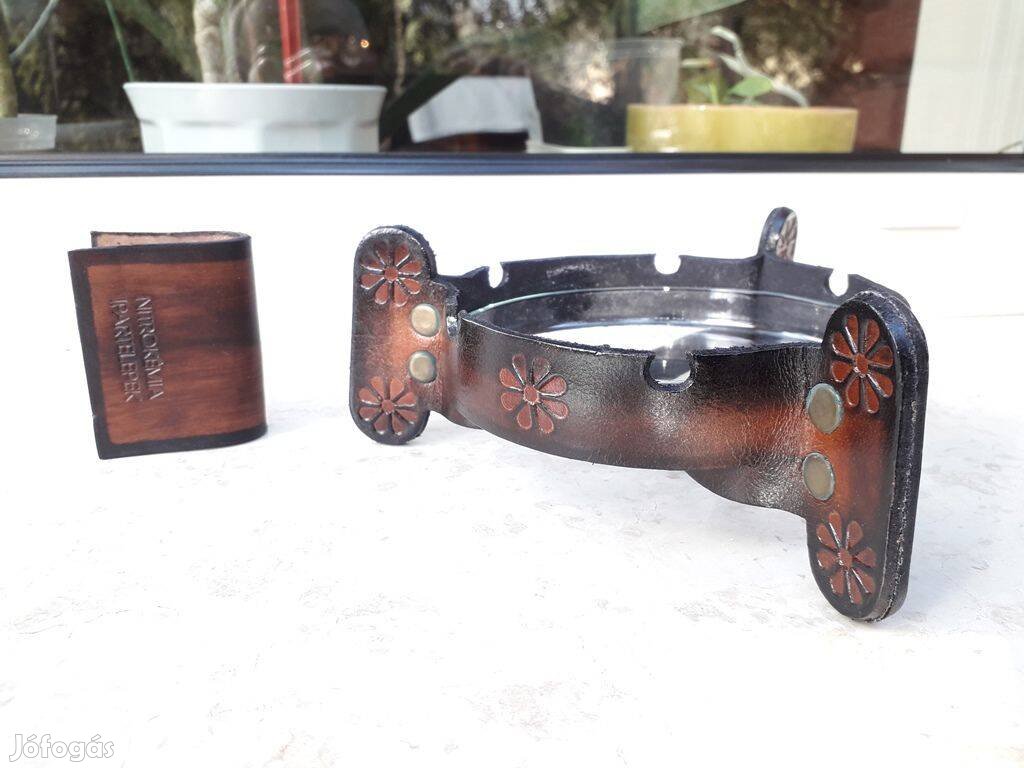 Bőrdíszmű hamutartó és gyufatartó