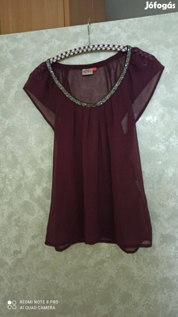 Bordó lenge ujjú elől kövekkel díszített muszlin blúz 38-as méretű új állapotú 2500 Ft-ért eladó.
