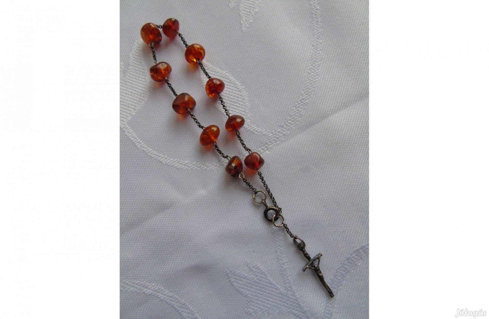 Borostyán 1 tizedes rózsafűzér ezüst lánccal kereszttel