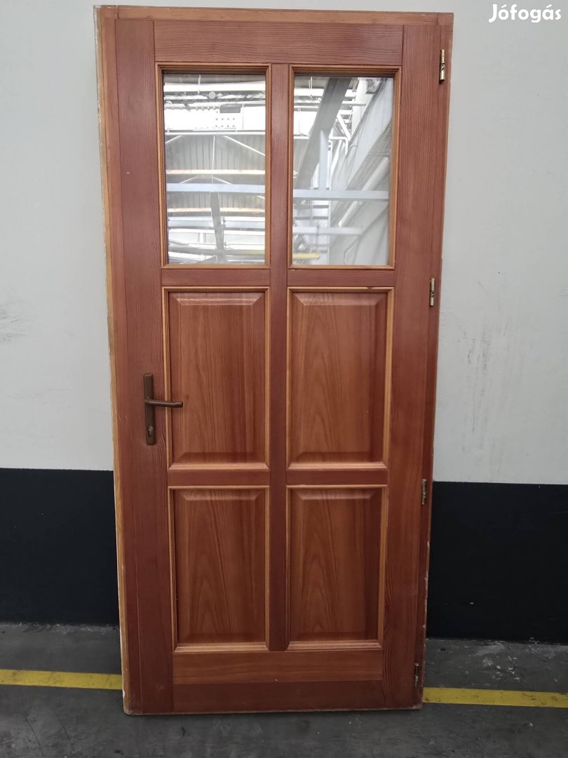 100x220cm,jobbos zsanérozású. Masszív nehéz borovi fenyő ajtó,18mm vastag hőszigetelő üveggel.5 ponton záródó vasalat. Abus,kódkártyás, biztonsági zárbetéttel 5 kulcs.Szintetezett réz zárpajzsos kilincs.