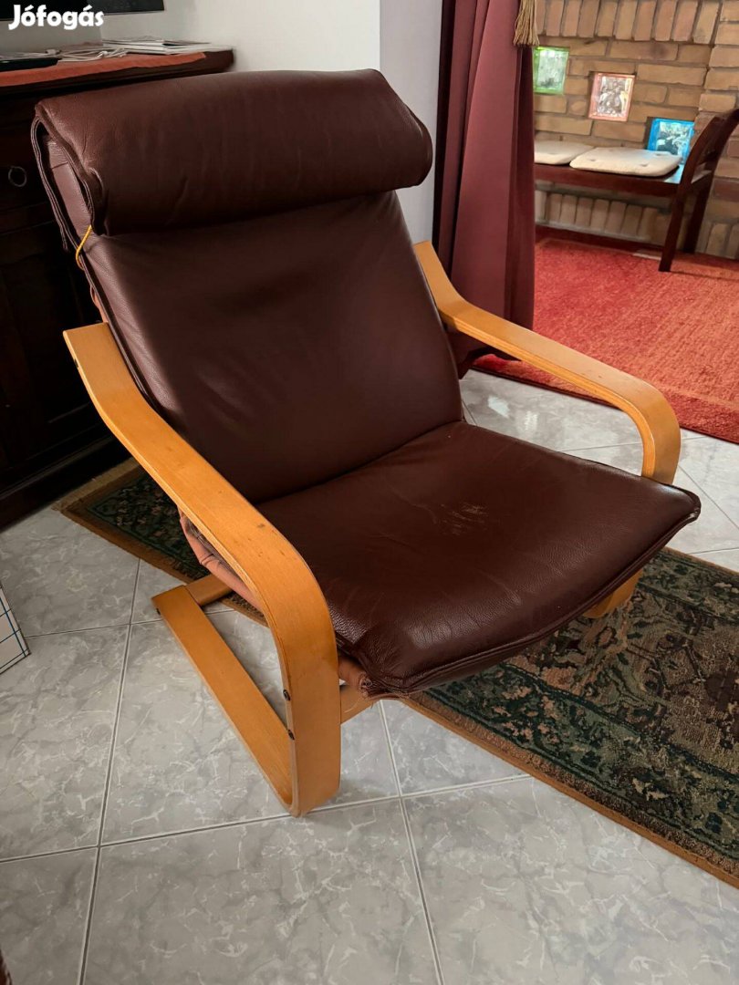 Könnyű, fa-bőr fotel, amely kényelmes, visszafogottan stílusos.
