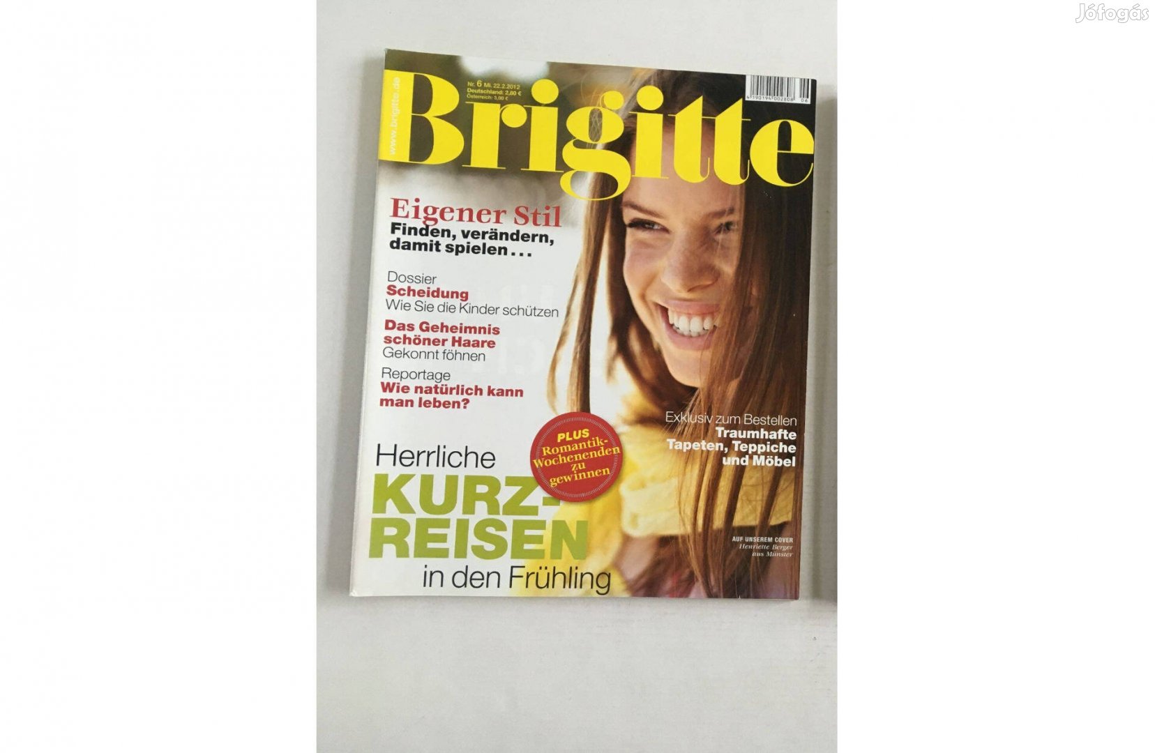 Eladó Brigitte német nyelvű magazin, újság 2012 februári (2012.02.) lapszáma (Nr. 6. 22.02.2012). Hibátlan állapotban van, ahogyan a képeken is lehet látni: nem gyűrött, nem ázott, a lapok épek és hiánytalanok, nem foltos, és nincs beleírva, belerajzolva sem.