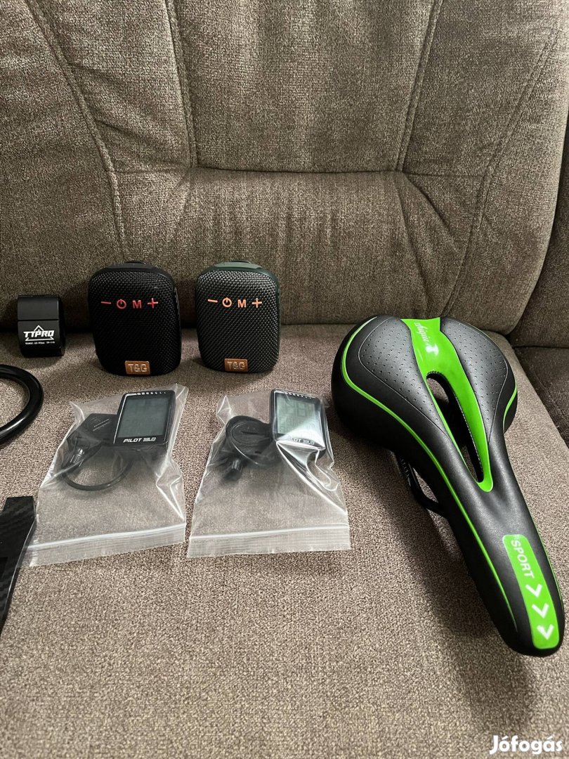 A képeken látható eszközök, két darab vezeték nélküli sebesség mérő, km számláló, két darab bluetooth hangszóró kormányra szerelhető, stb, csak egyben.