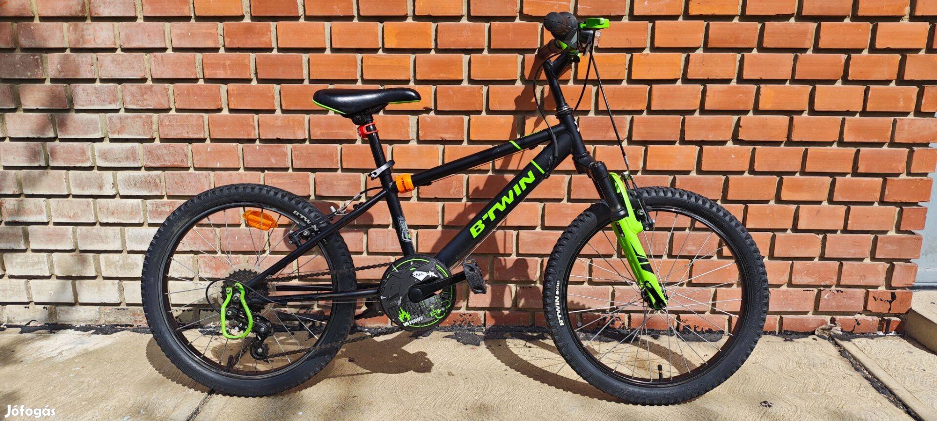 Eladó a képeken látható B'twin Racing Boy 500 gyerek kerékpár 20"-as méretben. 6 sebességes váltó, első teleszkóp, elöl-hátul V-fékes. Végig belső tárolóban tartott, használatból fakadó kisebb karcok vannak rajta, de műszakilag teljesen rendben, azonnal használható! A bicikli első és hátsó lámpával, csengővel, kitámasztóval rendelkezik. Pluszban adok hozzá 2 belső és egy külső gumit.