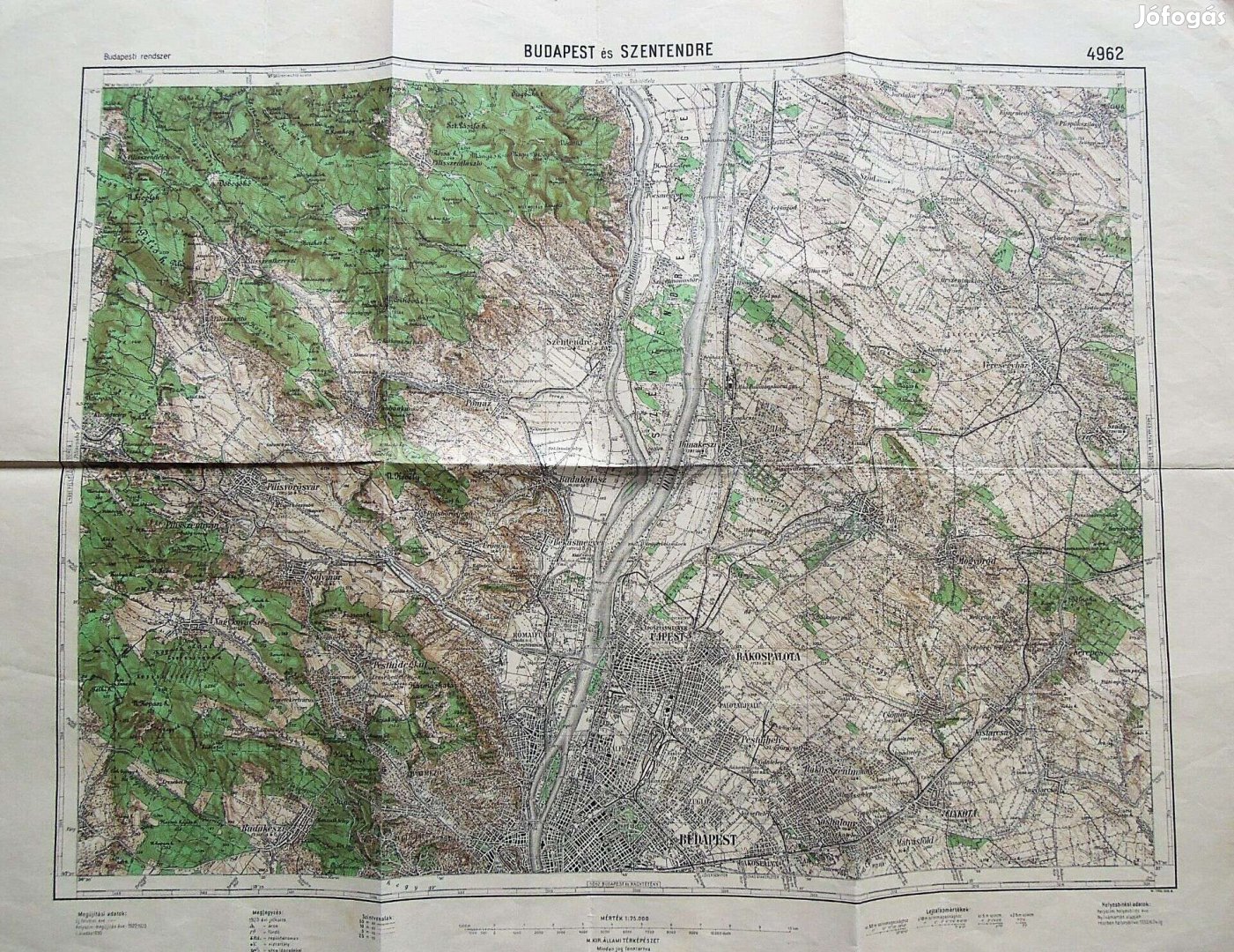 Budapest Szentendre térkép 1933. 4962. M.Kir. Állami Térképészet. Méret: 62 x 47 cm.