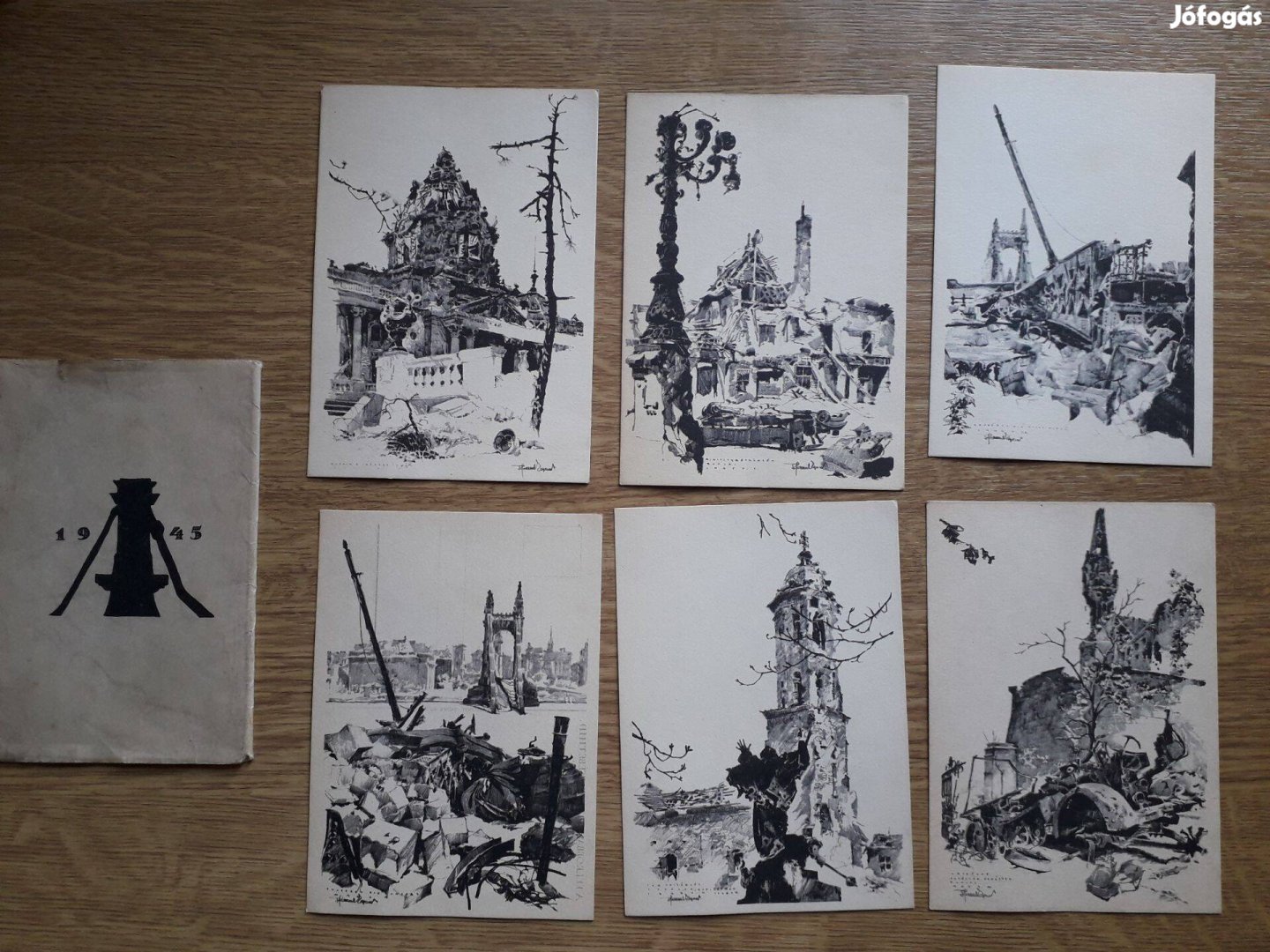 Postatiszta képeslapok 1945-ből, Budapest ostrom utáni állapotáról. Saját papírtokban.