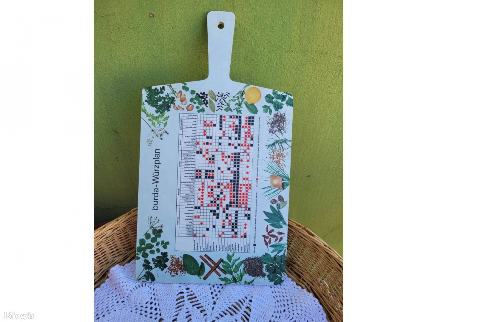 Eladásra kínálom a képen szereplő vintage Burda-Würzplan, műanyaggal bevont farostlemez vágódeszkát. A képek magukért beszélnek. Körbe fotóztam.