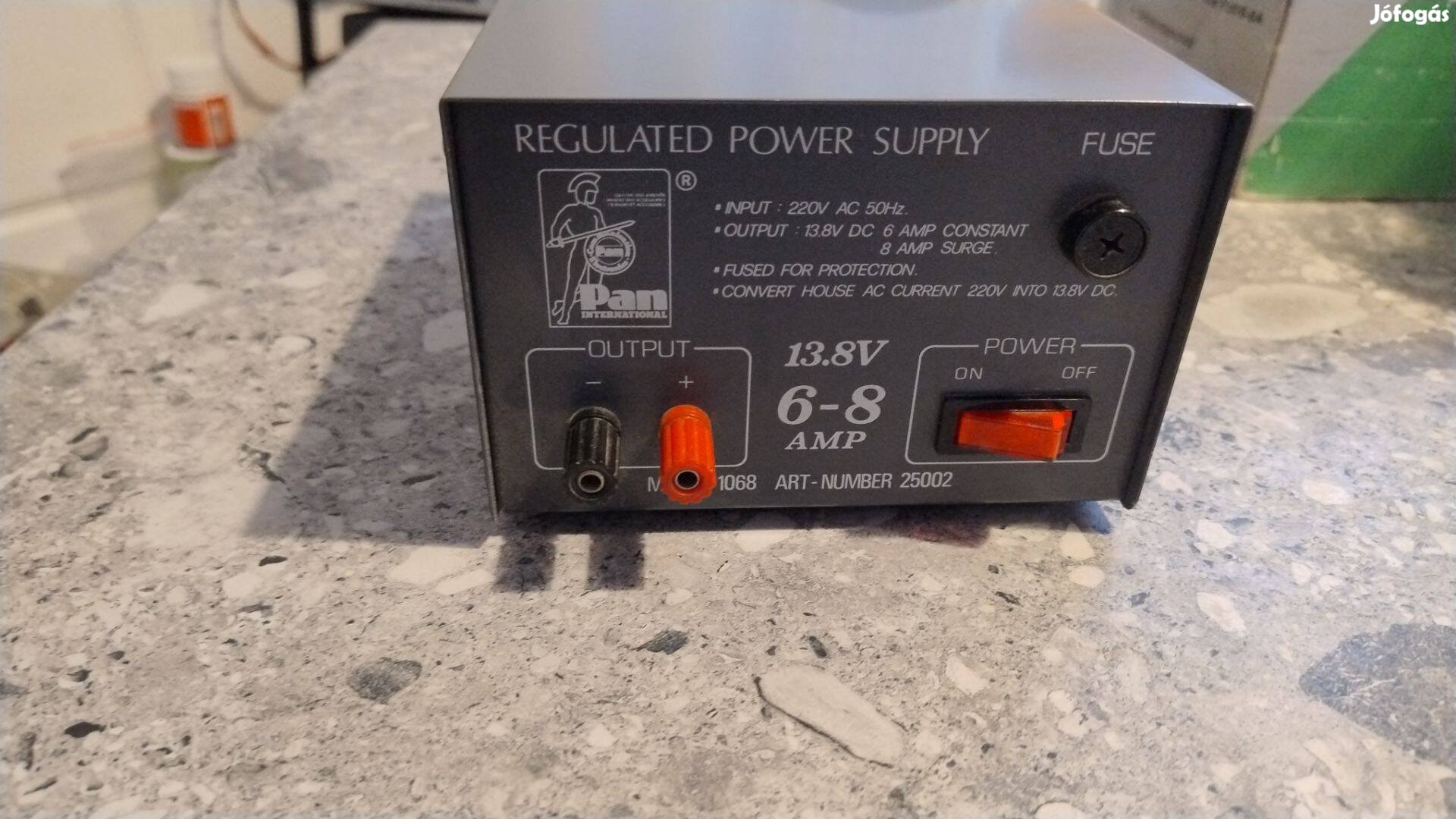 Eladó: PAN 1068 típusú 13.8V 6-8 A terhelhetőségű trafós tápegység.