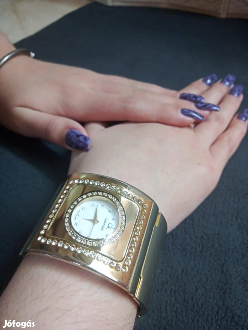 Calvin Klein női karóra, karperec eladó aranyozott a képeken látható egyedi, elegáns női design karóra,-karperec. Svájci szerkezet, vízálló. Méret 18 cm hosszú, 4,5 széles. Súly kb 20 dkg.Ára:40.000Ft.Kb 80 kővel díszített.Csak személyes átvétellel.Van több óra. Érdeklődni