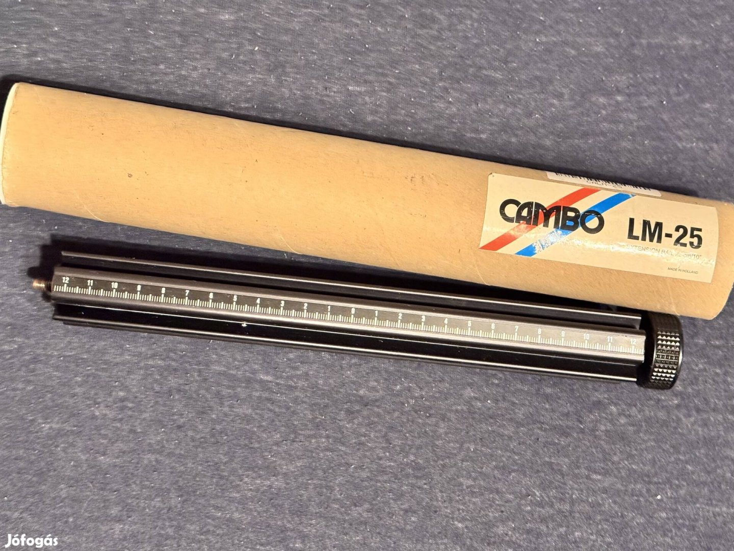 A 25 cm-es Cambo LM-25 monorail hosszabbító kompatibilis az LM- és UL-sorozatú monorail-okkal, amelyek a Cambo Ultima, Legend, Master és SF-sorozatú nagy formátumú kamerákkal használhatók. A szabványos monorail végére csatlakoztatható, hogy további hosszúságot biztosítson a közelebbi fókuszálási képességek érdekében.