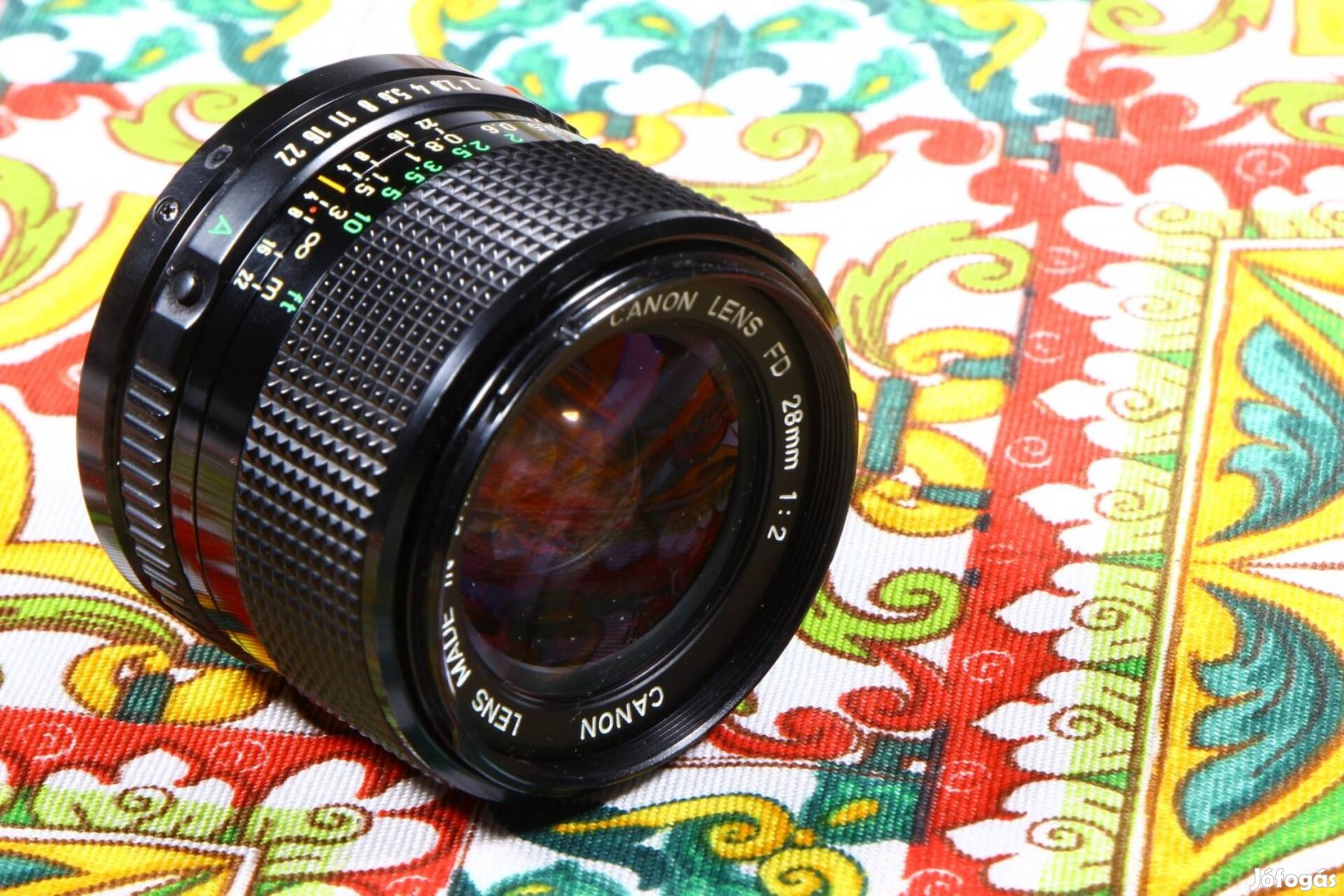 Canon fd f2 28mm nfd objektív, nagyon szép állapotban. Mindene tökéletesen működik, a lencséi gomba és karcmentesek.
